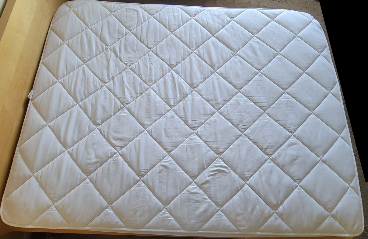 I have a really nice mattress pad / protector from Rio Home Fashions for sale (Queen size). I only had it for a couple of months and it is in really good conditions and machine washable. It has a Down Alternative Fill (Polyester Fiberfill) and is hypoallergenic and super comfortable and quiet. It was always used with sheets. 100% smoke, pet and bug free and comes from a very clean household.