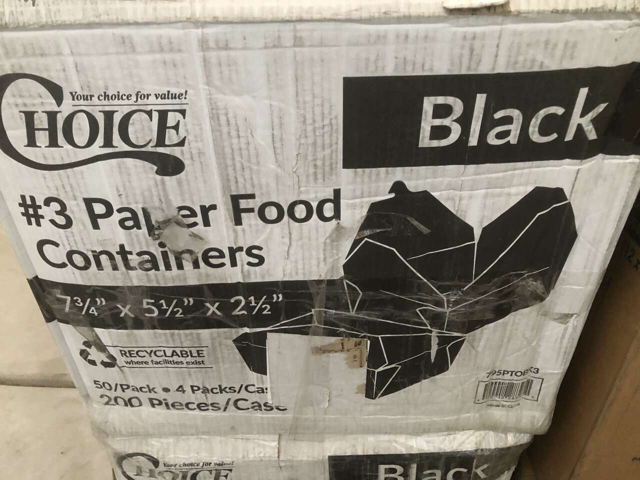 Choice 7 3/4" x 5 1/2" x 2 1/2" Black Microwavable Folded Paper #3 Take-Out Container - 200/Case