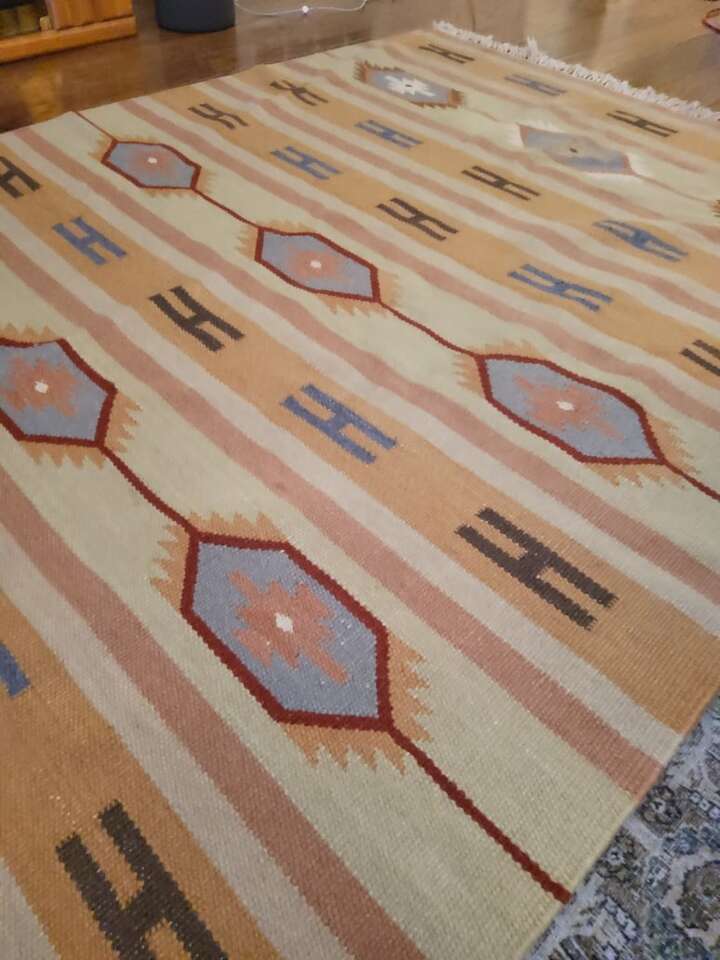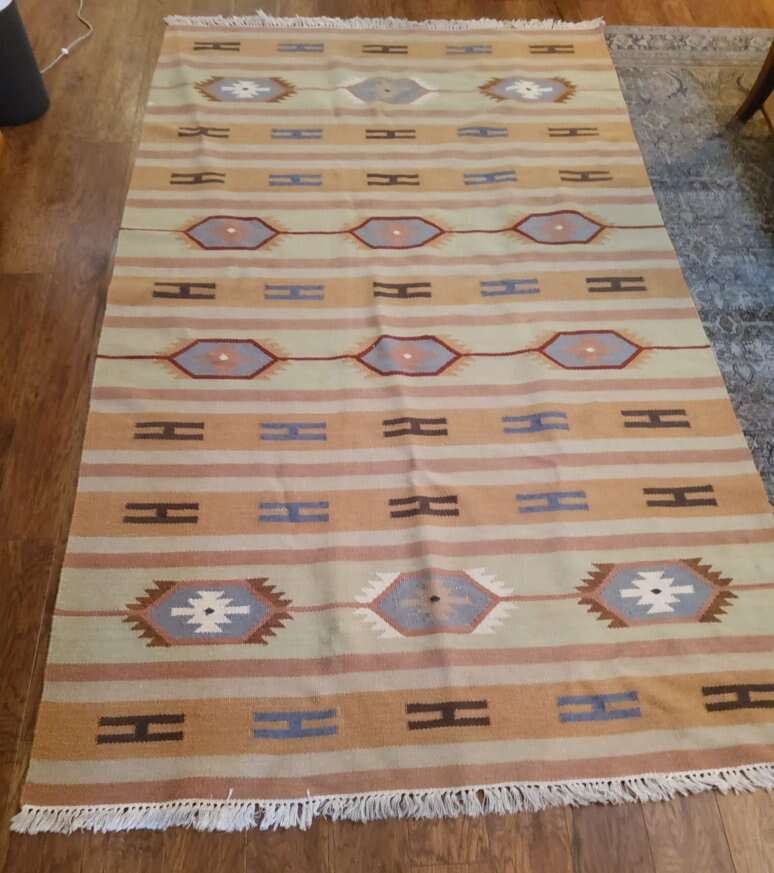 Beautiful Wool Rug, Showing no wear that I can see. Soft Fall colors. Cash or Venmo only FCFS, NO HOLDS WITHOUT PAYMENT NO CODES OR SCAMS THANK YOU!