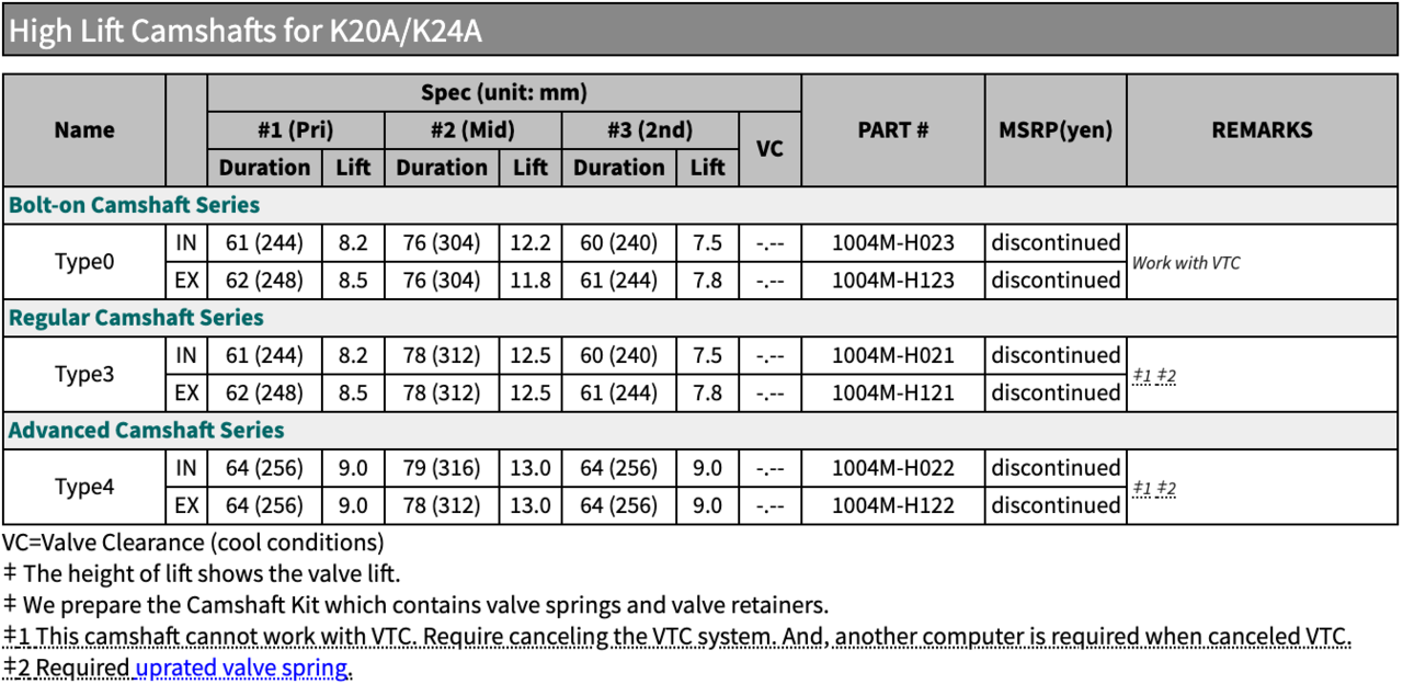 ZelleDrop-in camshafts for Honda K Series ONLY (K20 K24) These are long discontinued (please see Source) Type0 is the only cams released by JUN that retains factory VTC (iVTEC of IN cam gear) in contrast to Type3 & Type4 camshafts. Source info: https://www.junauto.co.jp/products/camshaft/k20.en.html Cash, Zelle, or PayPal (no Venmo) **ISO of S2000 parts (these will offset price) AP2 Differential 2006+ dashboard S2000 CR cat-back exhaust MUGEN sway bar Fr (25.4 mm) SPOON sway bar Fr & Rr (both are 27.0 mm)