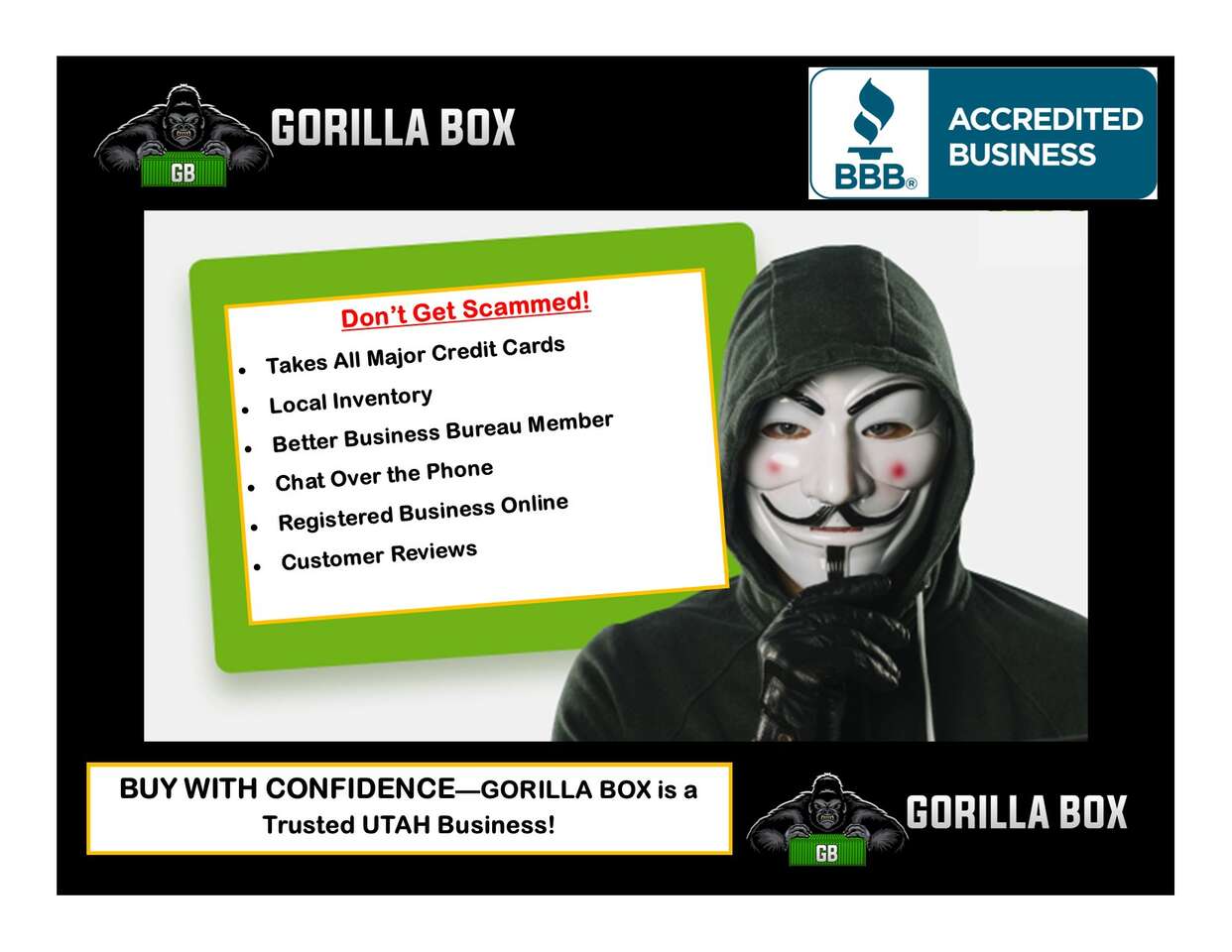 VenmoGorilla Box wants to earn your business. Containers are all we do, and it shows. We understand that purchasing a container is not something most people do everyday, so we love answering questions and helping each customer find exactly what will work best for their unique situation.