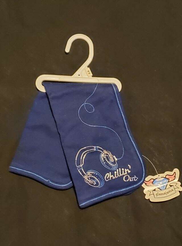 Burp cloth has headphones and says chillin' out. It will keep mom's & dad's clothes clean.