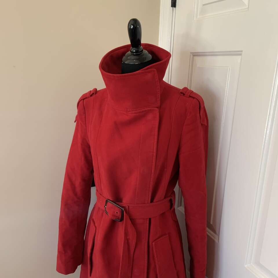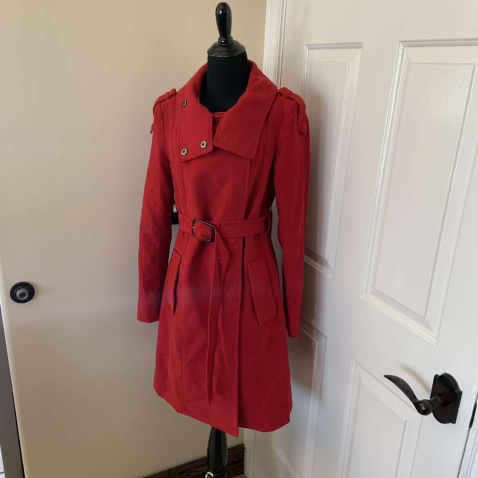 Mango Suit Adorable Women’s Red Trench Coat sz M Purchased in France Does have a marking on the front and on the elbow. The liner does have several rips (please see photos)
