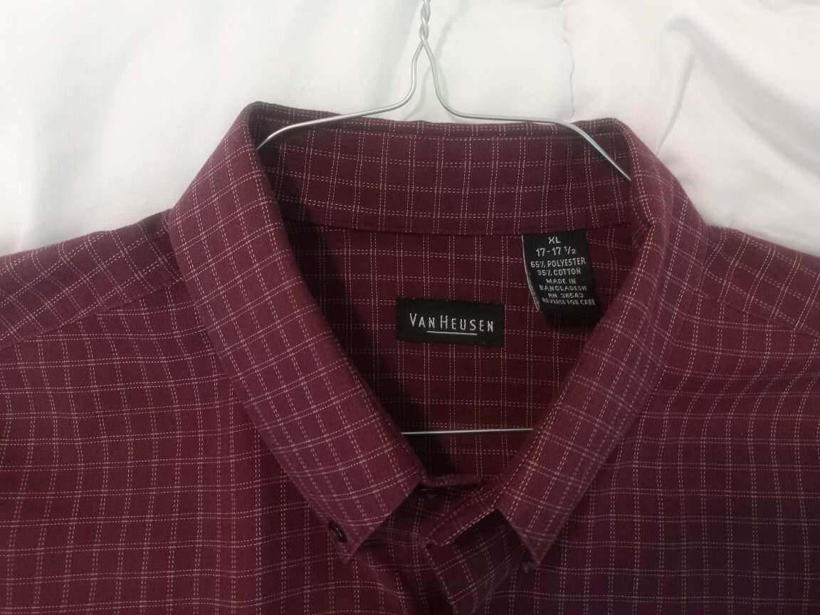 This men's Van Heusen XL 17-17 1/2 long sleeve is in excellent condition, and has recently returned from the cleaners after being washed, lightly starched, and pressed. There are no rips, stains, tears, or missing buttons. It has button-down collar and a front pocket. It is from a smoke-free home. Cash in or Venmo only.