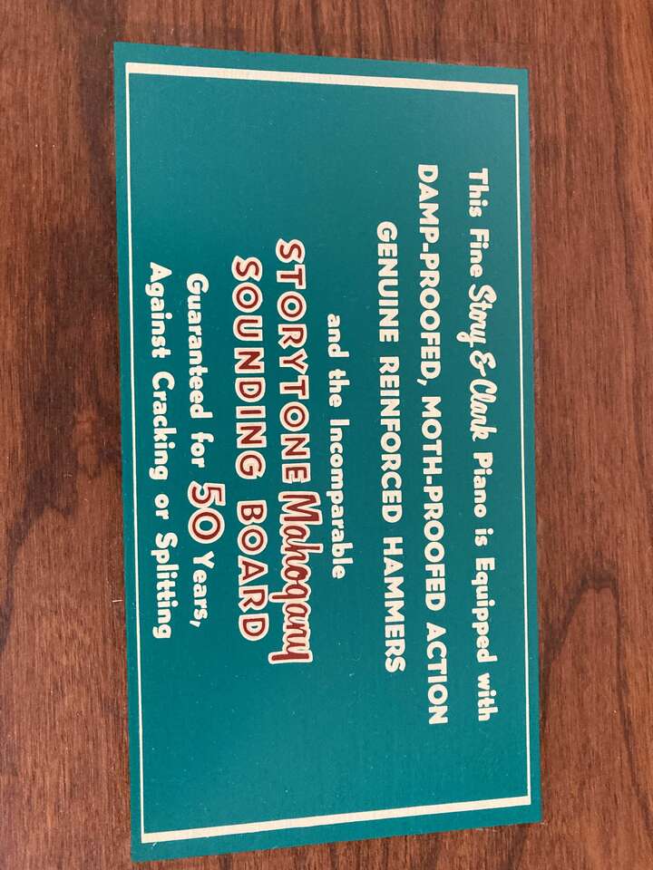 VenmoVery well taken care of, beautiful cherry wood, in excellent condition. Comes with matching bench. Has the incomparable storytone Mahogany SOUNDING BOARD. The third picture is the top of the piano notice the beautiful cherry wood grain. The 4th picture is with the front pannel off, it's easy to take on and off.