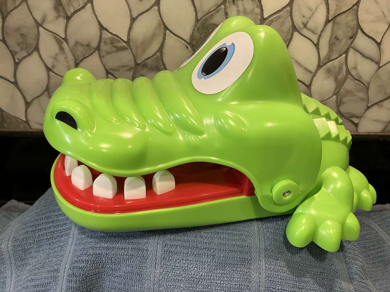 VenmoHASBRO #4898 CROCODILE TEETH DENTIST GAME TOY retails on Amazon currently at $14+tax & shipping. 7" X 10" X 5.5". Recommended for 4 years +. Pull open mouth and then take turns pressing down on the Crocodile's teeth. You never know when the mouth will close. Top does NOT pinch fingers. Save & Lots of Fun. Received 4.6 Stars Rating.Retails $21+. $12 Cash/Venmo. In Sandy. See both photos. 801-201-5350.