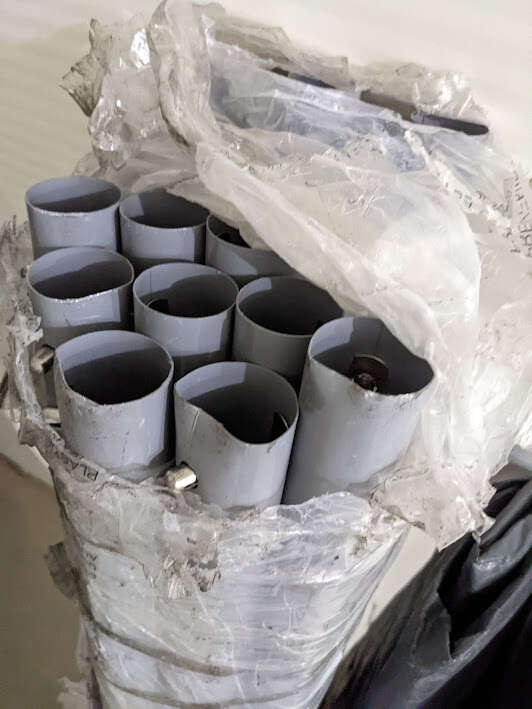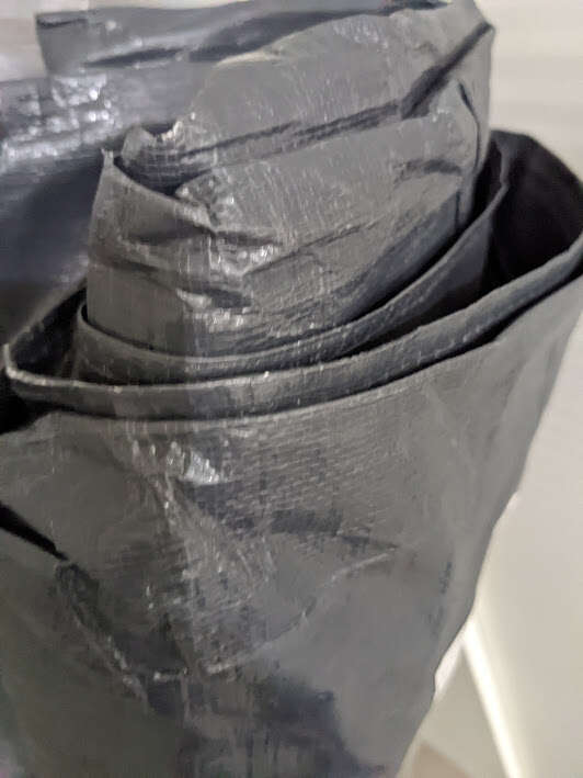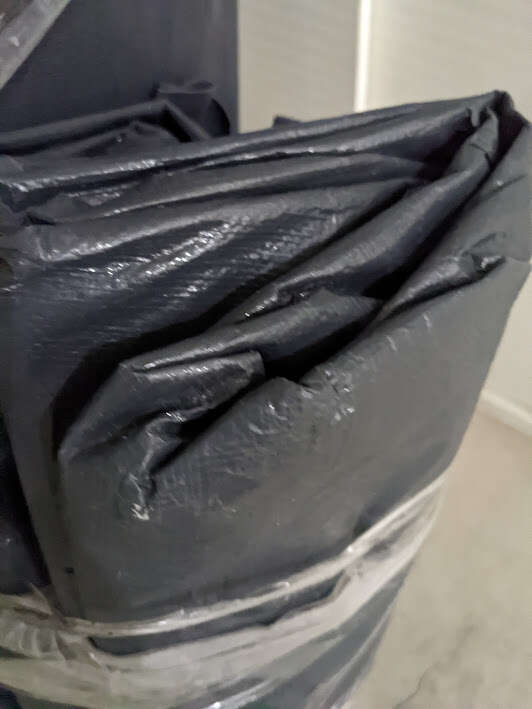 I can't find out the make of this, all I know is this is a boat load of 6' button spring clip poles and two high quality tarps. The first tarp photo is a very thick, high quality tarp that is clearly a roof tarp.
