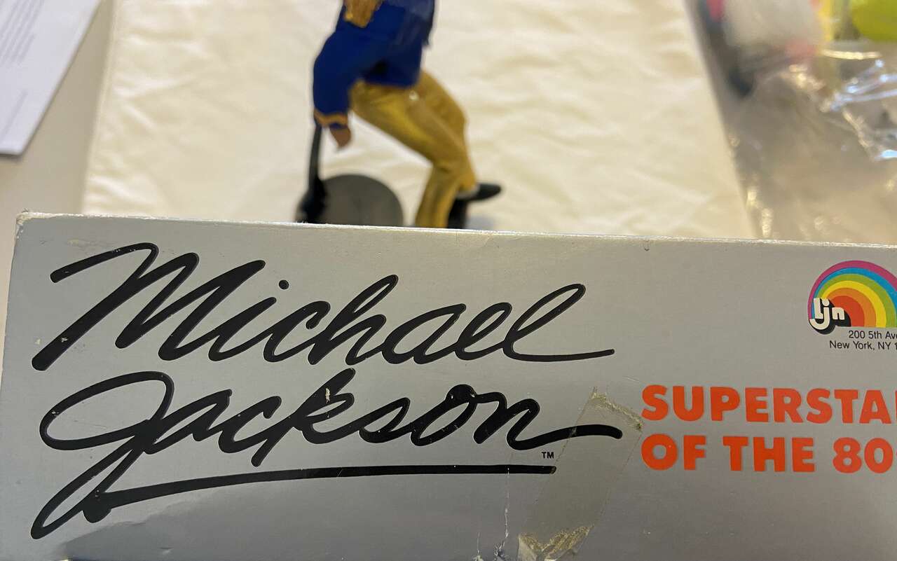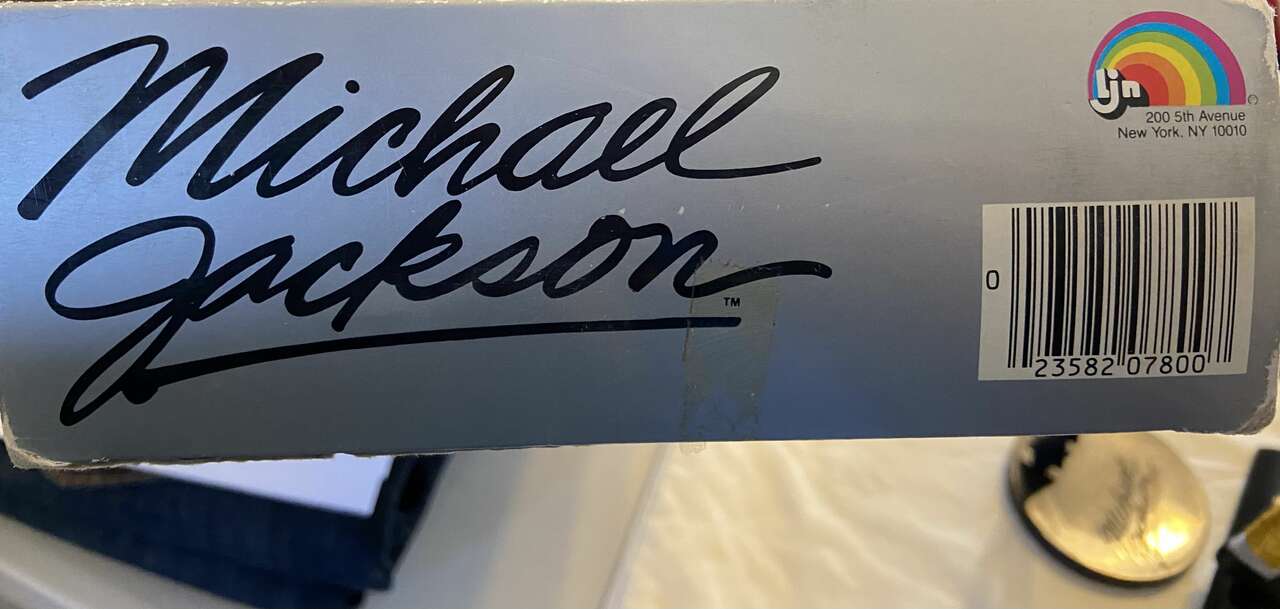Made to commerate this unprecidented win for Jackson. This Doll is 12" tall, fully poseable, and comes complete with a plastic posing stand. He is dressed in the iconic Sparkling Blue Military-style Jacket with Gold Epaulets, Sparkling Gold Trousers & Black Shoes. Accessories include iconic, Silver glittering 'Magic' Glove and Microphone.