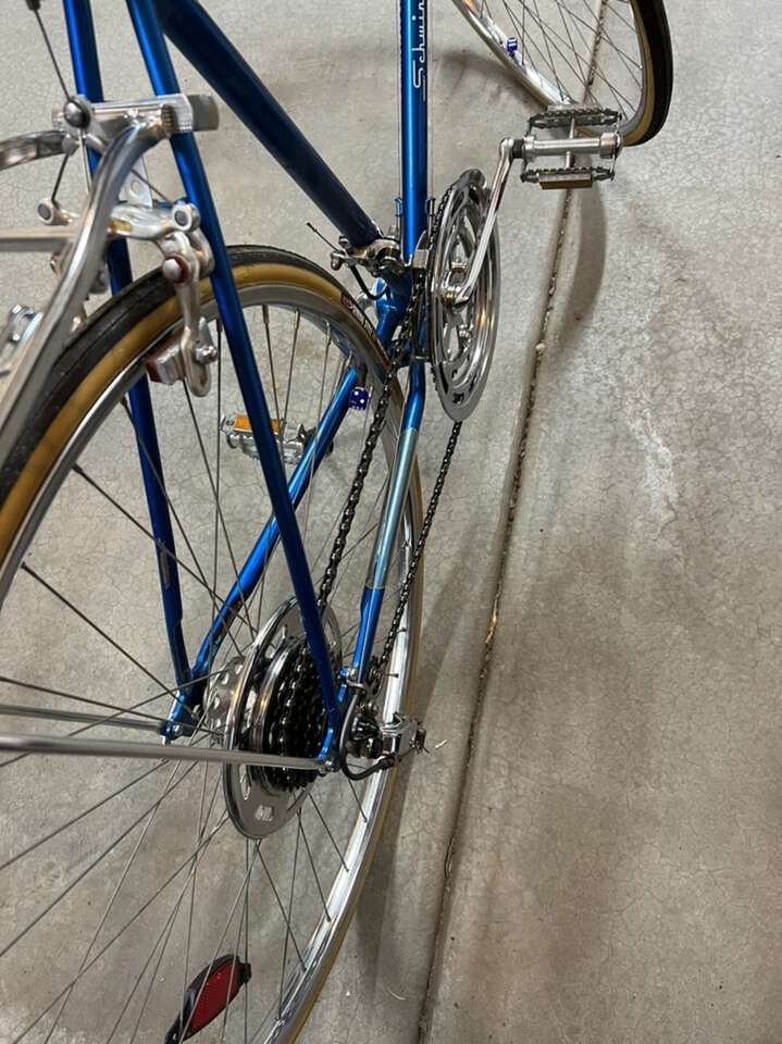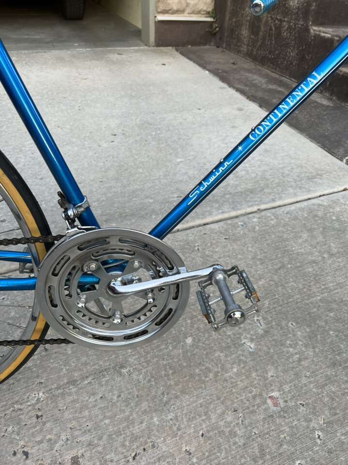 A Very Nice Classic From Over 40 Years Ago Schwinn Continental All Chrome is Excellent There is 2 spots of scratch (as pictured) 22 inch Frame From ground to top of bar 31 1/2 inch Carrier Rack Cool Blue Dice Valve Stem Covers I doubt you will find a nicer Schwinn Continental Check out my other listings