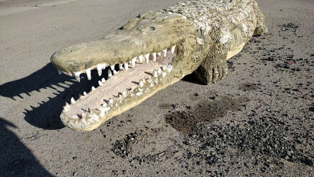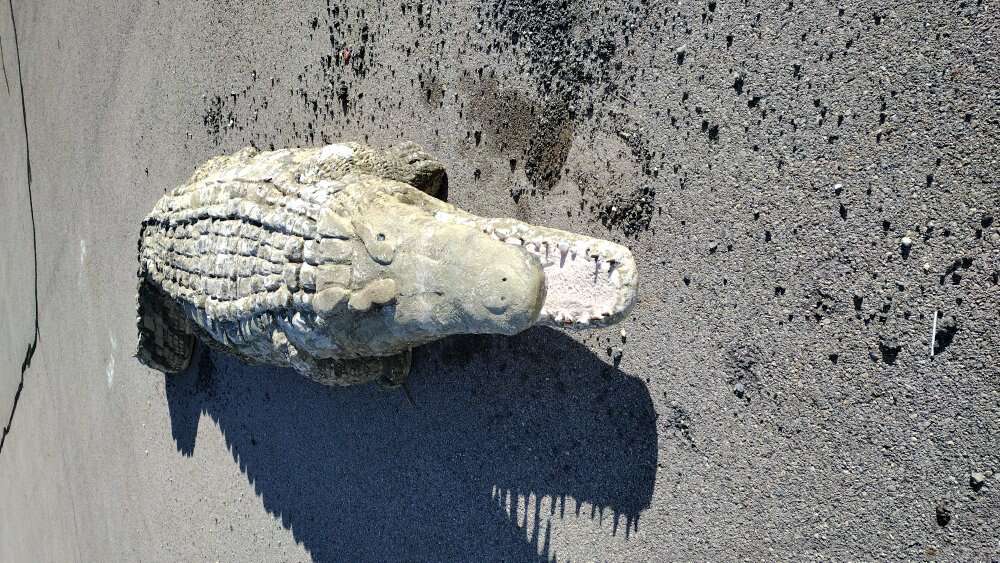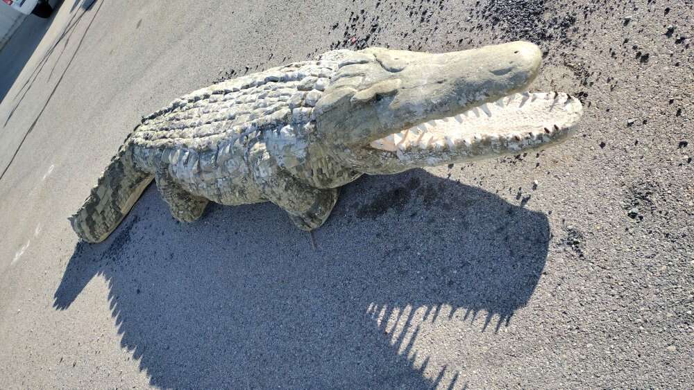 Own a Piece of Hogle Zoo. This is a steel and concrete alligator. He does weigh about est 2000 lbs. We can load on a flat bed trailer. Come with two signs. Jaws used to be in the kids play area. Put him in your driveway approach to keep the pesty solicitors at bay.