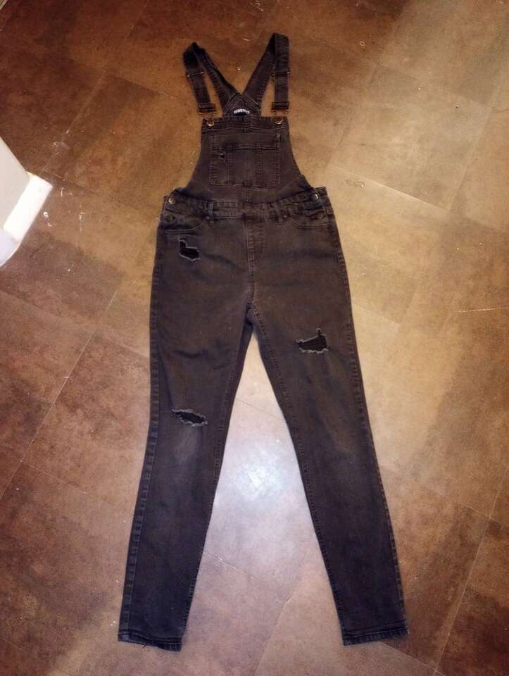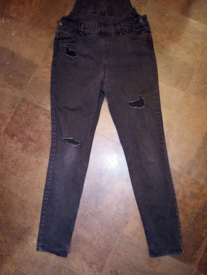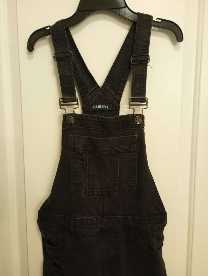 Teen's/ Juniors Black Overalls-size 7. They are in great condition, have (intentional) holes on the legs, and are from a smoke and pet-free home. The brand is Blue Spice. $15 cash or Venmo. Will hold with Venmo. Text if interested. Check out my other ads-lots of teens clothing for sale.