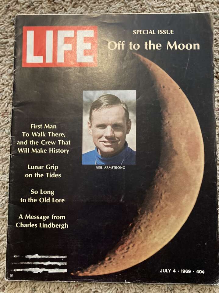 Original LIFE magazines from 1969: January 10, February 28, March 14, July 4, August 8, August 22, August 29 They have articles related to the lunar landing and Apollo missions. The photos are the front and back of each magazine. The magazines have varying degrees of damage- all have sticker residue on the front from the mailing address. they have varying degrees of water damage/tears/folds/wear on the covers/corners. See photos. The first one (Jan.) is missing the back cover (You can see the tape in the photo.)