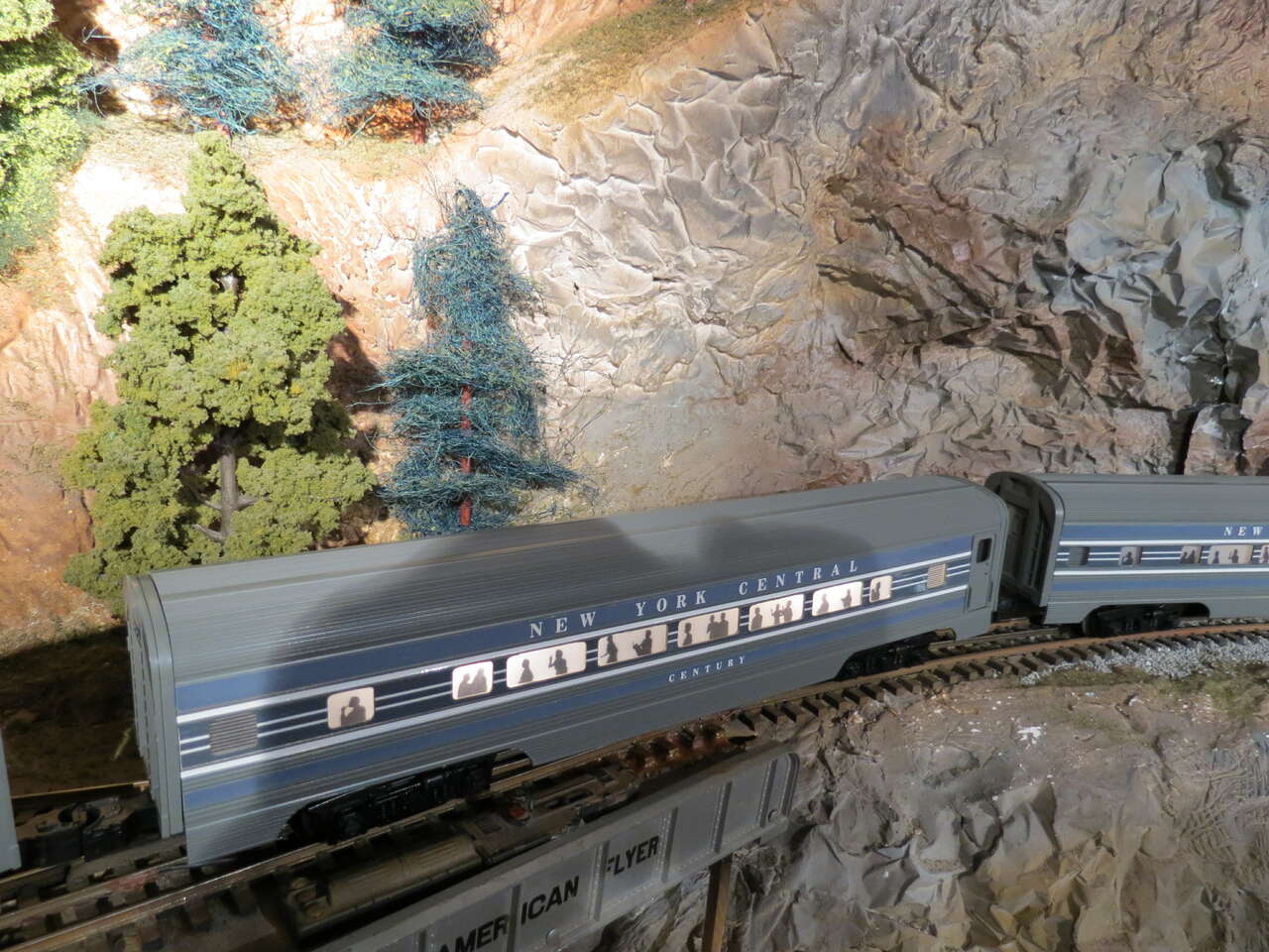 Original owner -Williams Scale Brass Steam Engine, 3 rail Lionel Compatible. Beautiful Retro 1930-1940's styling. Upgraded Digital QSI sound system- steam chuff, steam whistle, bell clang, idle steam sounds etc. Also comes with ribbed- painted to match- New York Central 20th Century Limited passenger cars, observation and mail car. Cars light up with passenger figures.