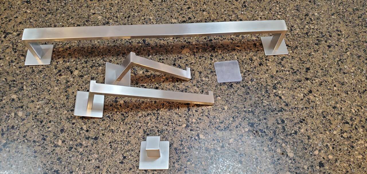 24" TOWEL BAR, TOILET PAPER HOLDER, HAND TOWEL BAR, ROBE HOOK
