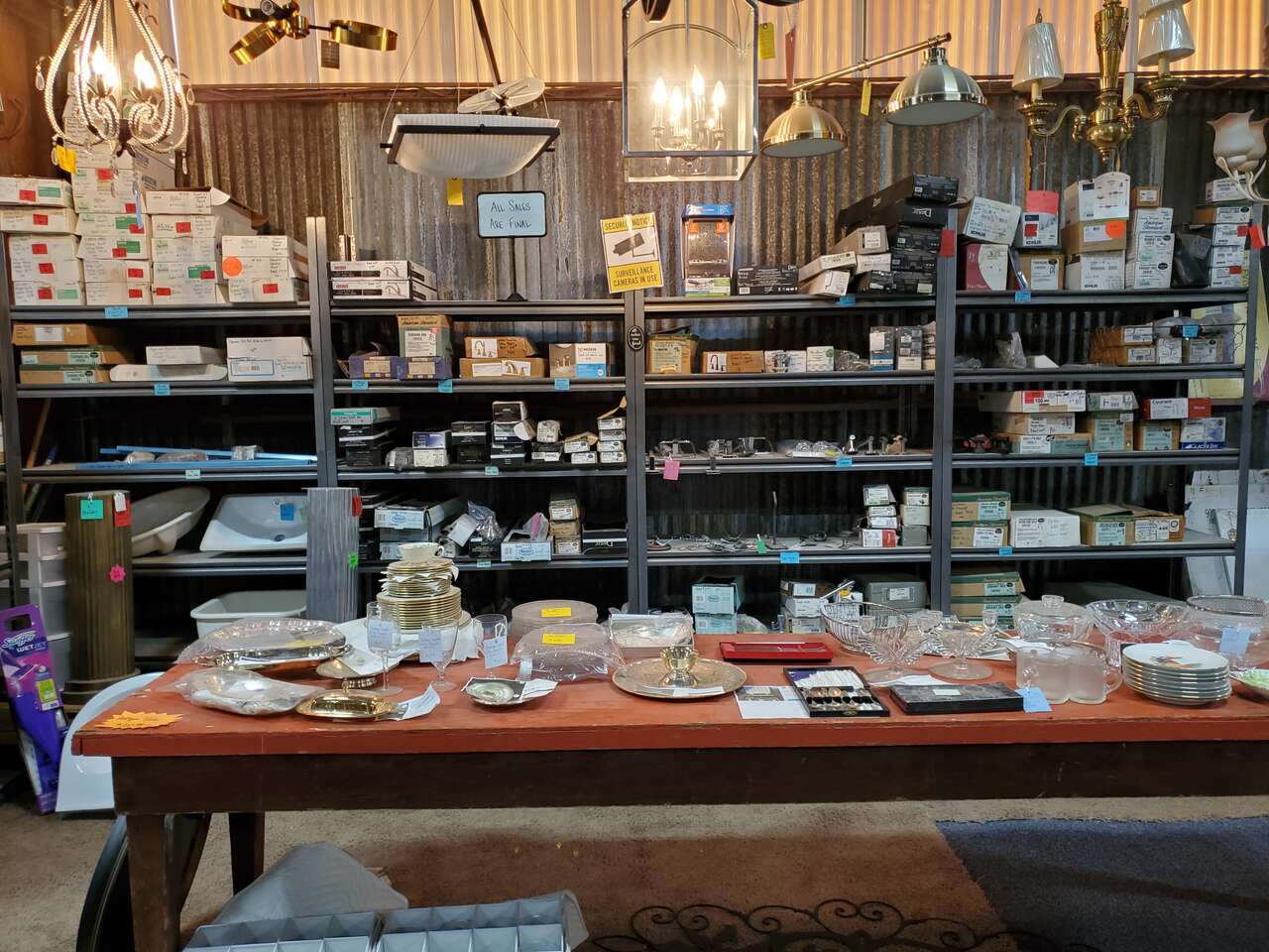 I have over 200 chandeliers, 100 vanity lights, and 100 flush-mount lights. There is also a large variety of faucets, sinks and bathroom fixtures. I have assorted furniture and home décor. Attached pictures show a portion of my inventory.