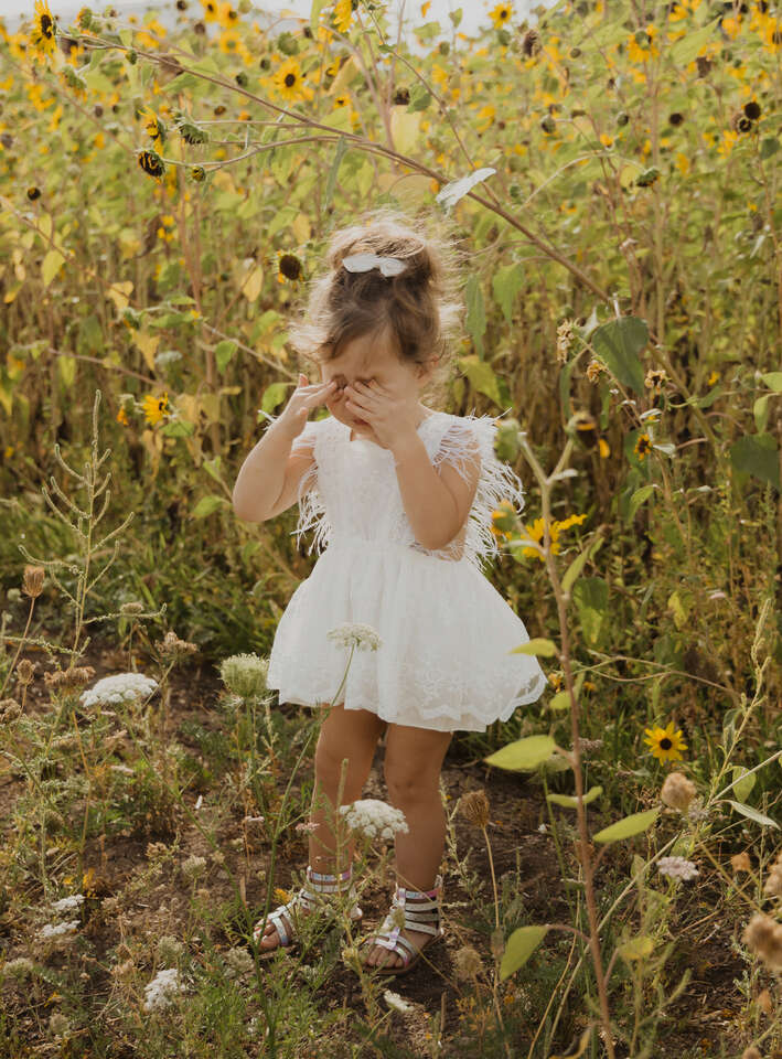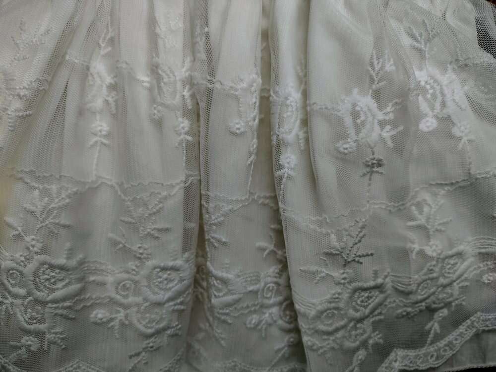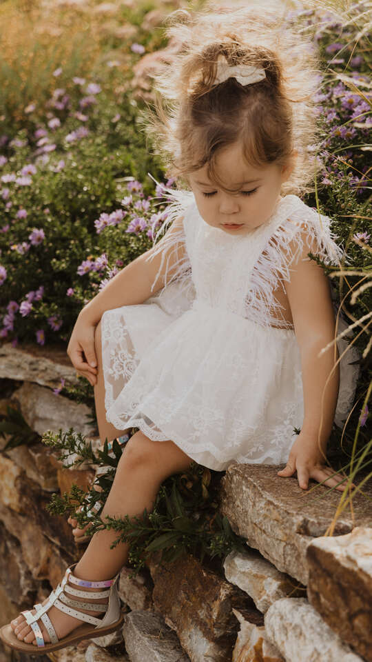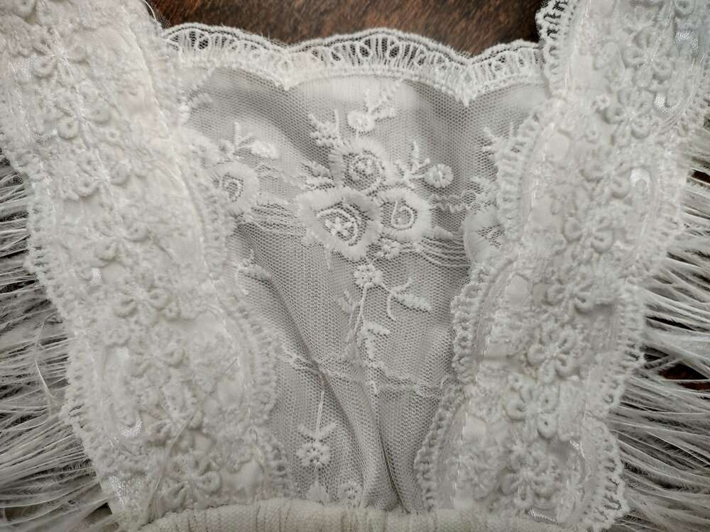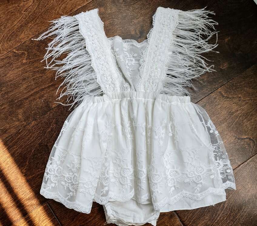 I bought this beautiful white lace romper for my daughter's 2 year old photos. The sizing is 18-24 months. She was wearing 24 month or 2T at the time and it fit her perfectly. I purchased from the Spoiled Rotten Children's Boutique at Gardener Village. I also purchased a headband to coordinate with it, but she won't wear headbands...or anything in her hair. I spent $50. I forgot to remove the tags, so they are still attached to the romper. The romper snaps at the bottom. It has a white skirt with a lace overlay. The top has lined lace with white feathers. It's absolutely gorgeous. It says it can be washed, but I haven't tried it. See my other listings for more items, or search 516139. Cash or Venmo only, Venmo preferred. No coins. Pickup location is near 90th and Redwood.