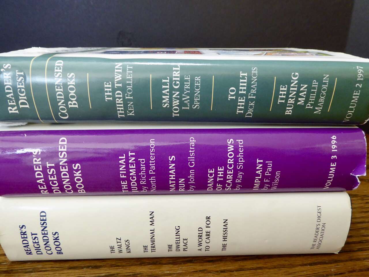 The actual Hardbacks all looks great with a few minor edge tears on the edges of the Dust jackets. No tears or writing to the pages inside the books.