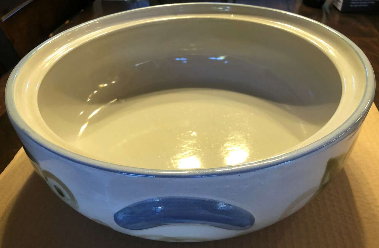 For sale Louisville Stoneware 3 Quart Round Covered Casserole. Vintage Blue Band. Like new. Hardly used. No cracks or chips. Similar casseroles sell on company’s website for $99. Great for funeral potatoes. $30. Check out: https://www.stonewareandco.com/