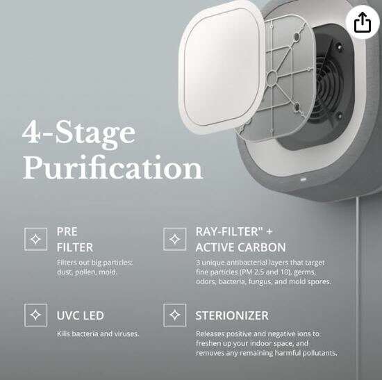Aura Air Purifier - Smart Air Purifiers for Home or Office. 4 Stage UVC LED + Sterionizer + Ray HEPA Filter Air Purifier