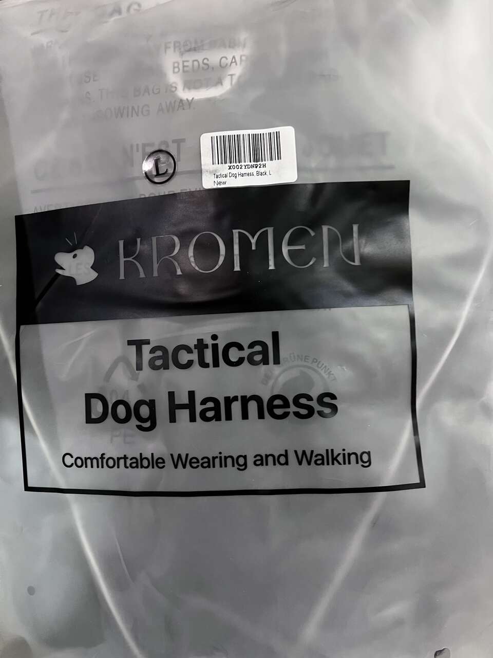 NEW -KROMEN brand Tactical Dog Harness -No Pull -Working Dog Vest Sz Large, Black
