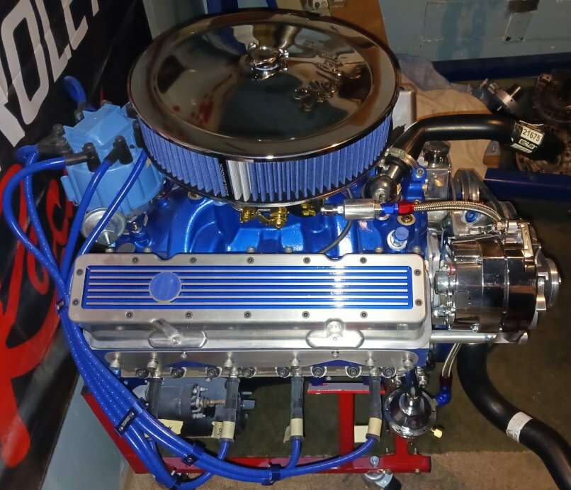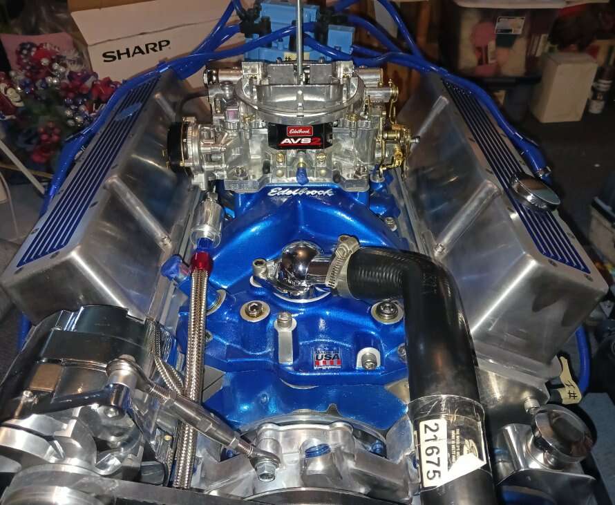 ( Available For Sale Until Marked Down as SOLD ) is a Rebuilt Chevy 4 Bolt Main .060, before rebuilding, it was removed from a 1982 Chevy Motor Home, New Parts Installed: Forged Steel crankshaft. .060 Pistons, Forged Steel Piston Rods, Clevite Crankshaft & Rod Bearings, STD Piston Rings .019/.020 Thousands Gap, HD Milling Oil Pump with pickup tube, ARP Updated Oil pump Drive Shaft, ARP Oil Pump Stud & Nut, ARP Crankshaft studs & nuts, Double Roller Timing chain, Cam shaft Lock Plate, Mild RV FT Cam with Teflon Cam bearings, Front & Rear oil Galley plugs, 2 piece rear main seal, Cast Aluminum oil pan & hardware, Oil Pan Gasket, Brass core plugs, Lifter Valley Screen Kit, Lifter Valley Vents, NPT Deck Plug Kit, Aluminum timing cover & Gasket, Chrome Timing Tab, Harmonic Balancer, Aluminum crankshaft pulley, 3 Allen Head crankshaft pulley bolts, ARP Center Crankshaft Pulley Bolt & washer, Aluminum Long Nose water pump & Gaskets, Allen Head water Pump Bolts & Gasket, Mechanical High Flow Fuel Pump 2751. Fuel Pump Shaft, chrome fuel pump plate & gasket, Allen Head Fuel pump Bolts, HEI Distributor, With Distributor Cap, Rotor Cap, Ignition Control Module & Coil, 8 JDMSpeed Spark Plug Cables, 8 Autolite Platinum AP103 Spark Plugs, Aluminum long nose water pump pulley & Bolts, Aluminum Alternator Bracket & Allen head Bolts, Aluminum Power Steering pump bracket & Allen Head Bolts, Push Rods, ARP Head Studs, Washers, & Nuts, Aluminum Cylinder Heads with 195 cc intake runners, 77cc Exhaust runners, 64 cc combustion chambers, with duel Perimeter inner & outer valve cover bolt holes, Polished Aluminum Valve Covers #PCE314.1070.08. Adjustable Rod guides, ARP Thread in Rocker Studs 7/16 Course X 3/8 Fine Thread. Engine-Pro Nitro Black 2.02 head Diameter, 11/32 valve stem, 4.910 valve Length, Tip .250, Performance Intake Valves 01-3003, Engine-Pro Nitro Black 1.6 head Diameter, 11/32 valve stem, 4.910 valve length, Tip .250, Performance Exhaust Valves 01-3001, 16 Stock Hight SB Valve Springs with Damper, Spring Diameter 1.250" Installed Height 80# @ 1.700, Open load valve open 200 # @ 1.250" Max Lift .450", Comp Cams Valve Spring Locator Kit 4784-16 ID ,570" OD 1,500" .060" Rocker Arm Stud Girdle kit #1535002. 3/8 -24" thread Rocker Polylocks, 1.25 11/32, 7 degree valve spring Retainers, Howard's 93010 7 degree 11/32 single groove valve locks, Fel-Pro Cylinder Head Gaskets #501-SD. Starter mounting Bracket, Plated Allen Head Exhaust Manifold, Intake Manifold, & valve cover bolts. Valve Cover Gaskets, Anodized Blue Engine Mounts. Polished Aluminum 12 Volt 110 Amp Alternator #7127-SE105C, Polished Aluminum Alternator Fan kit #MCC907, Alternator Belt #15440, Wix Oil Filter #51060R, Aluminum Power steering pulley, Chrome Saginaw Steering Pump, Power Steering Belt #15365, Water pump Belt #15440, Edelbrock 2701 Manifold. Thermostat Housing #2661, Edelbrock HP Thermostat #8603, Heater Hose Fitting # 56237. Milling Hydralic Lifters Part# JB-969. 8PC NPT Plug Kit #6352G, 5,Qts BR40 Oil. Scat Flex Plate Part #942-FP-350SFI. JDMSPD Wire Deviders Part #536-SPWSBL, Edelbrock AVS2 1906 Carbureter, Edelbrock single feed fuel line/filter 8131. Edelbrock Pump to Carburator fuel line 8123, 1" Carburator Spacer S2103B. Blue Carburator Gaskets G6, Edelbrock Pro Flow Air Filter 43667, Edelbrock Air Filter Assembly 1221. & wing nut, Newly Chrome Plated OEM Throttle Cable Bracket, Moroso Pre-Filter Oil Screen #710-23845, Selling For $5,700