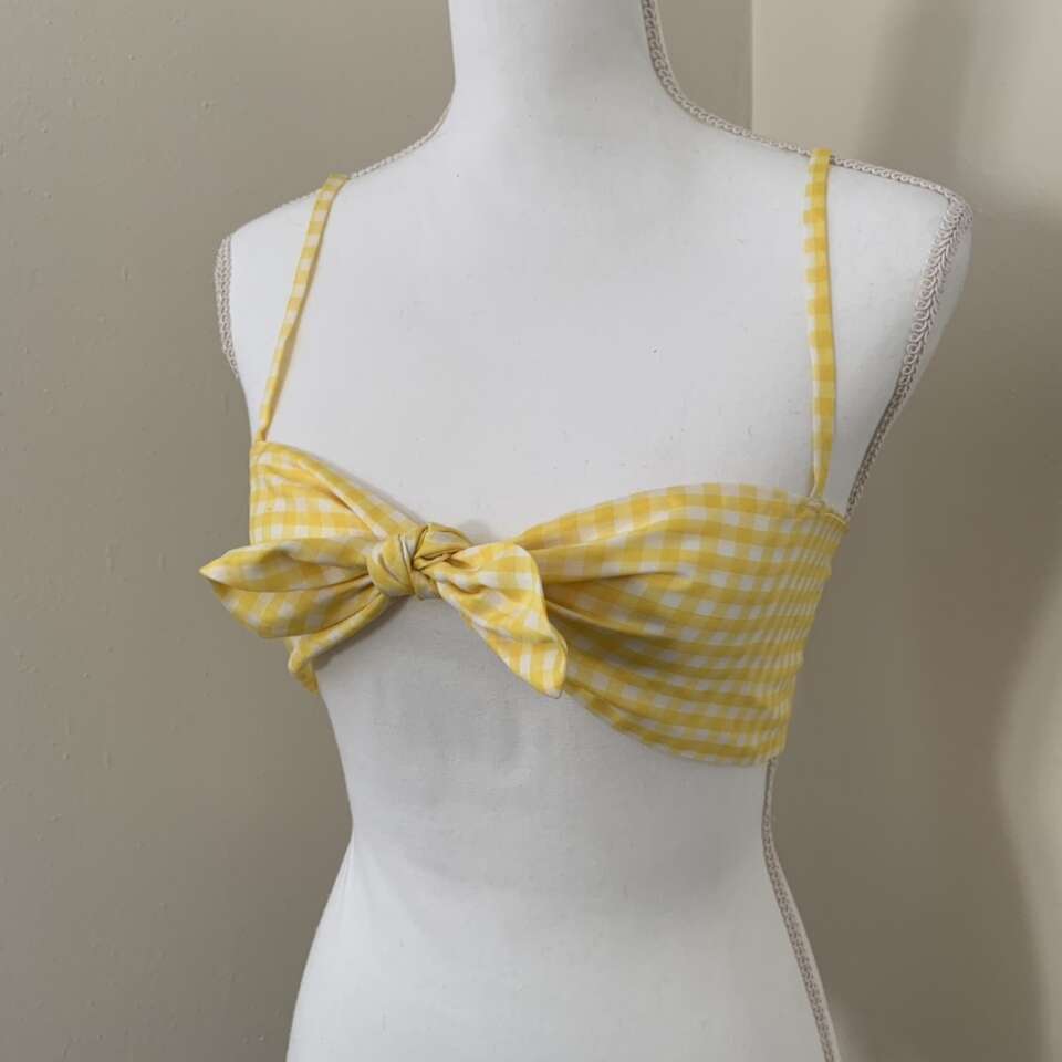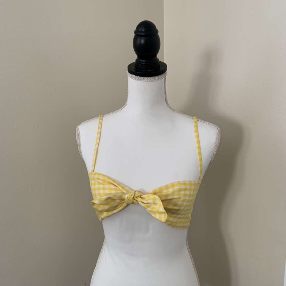 KS Garner Brigette Yellow & White Gingham Tie Top Size XS