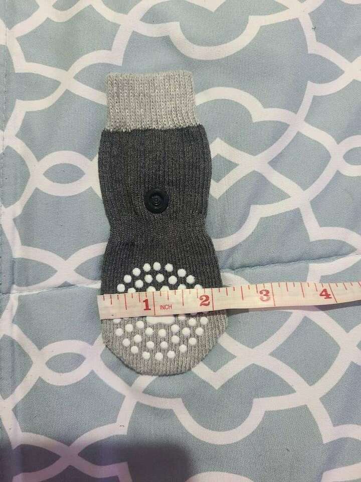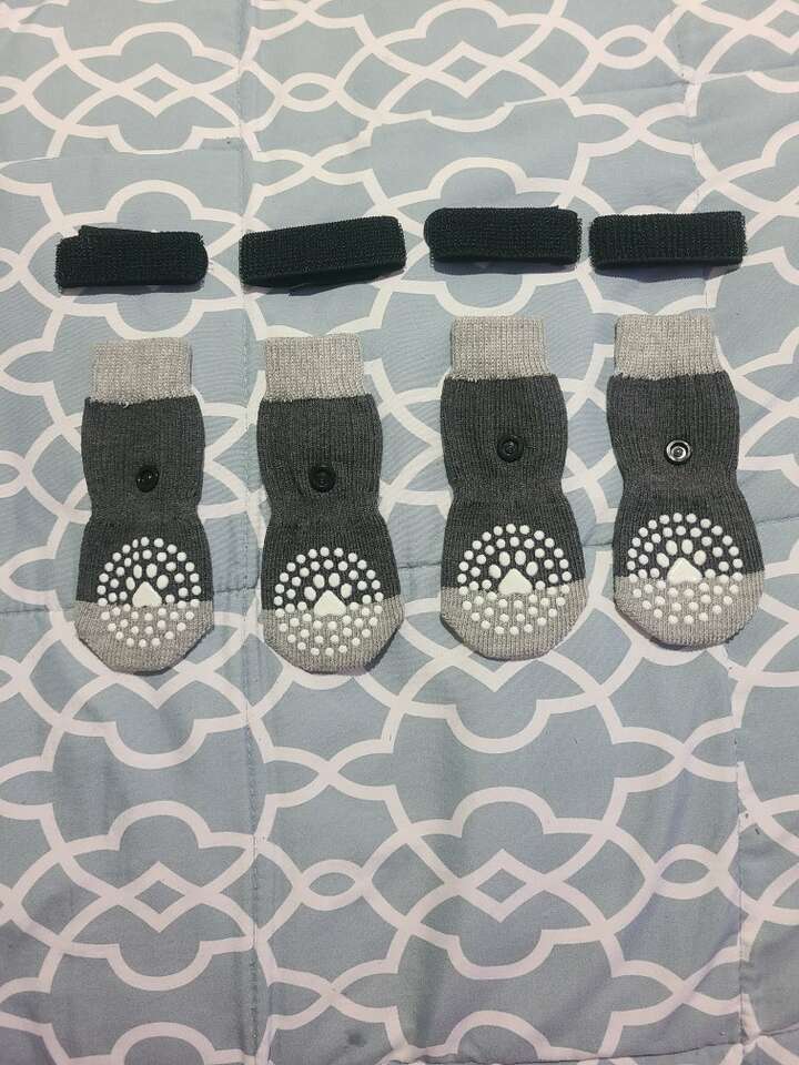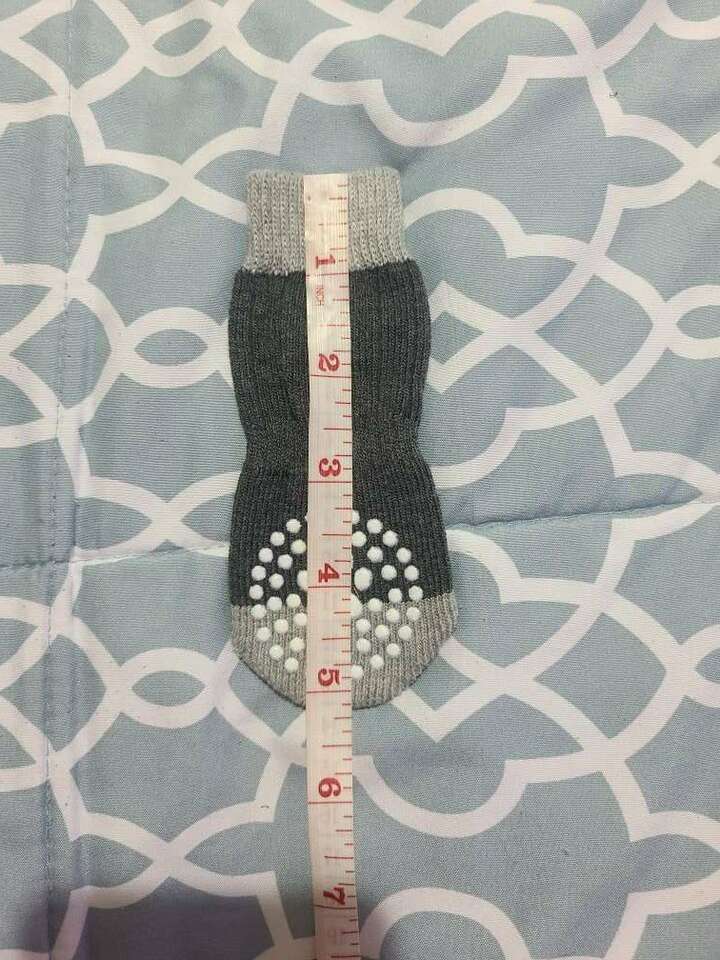 This pair of dog socks are new. They are made of 75% Cotton 25% Polyester. All my items come from a smoke free home. Any questions please feel free to contact me.