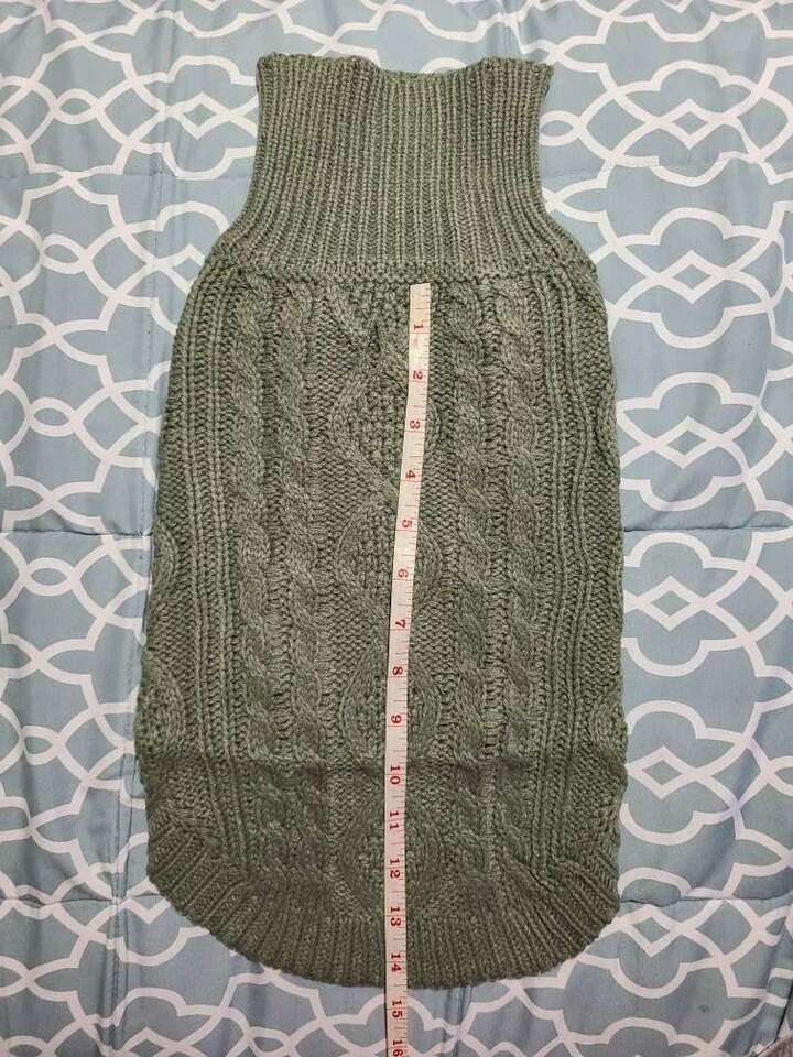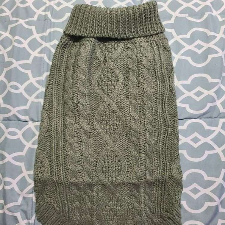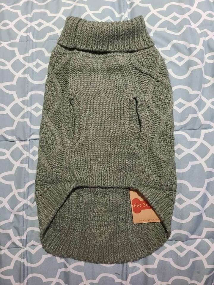 This S/M dog sweater is new. Its 100% Acrylic. All my items come from a smoke free home. Any questions please feel free to contact me.