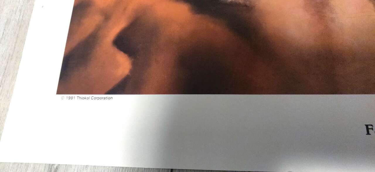 I have two of these, selling for $20 a piece. No tears, markings, or creases. Aircraft Art Print"Falcons in the Fold: A Desert Storm" Artist Mark Waki Published in 1991 by Thiokol CorporationU.S. Air Force F-16C Fighting Falcons and A-10A Thunderbolt II's deploy Kinematic IR Flares as they surprise an enemy armored column returning to base. Thiokol Corporation is conducting an independent research and development project to develop new infrared countermeasures to protect aircraft from the threat of ground-launched, heat-seeking missiles. A candidate concept is the Kinematic ("Fly Along") IR Flare.Measures approximately 19" x 24"Please see pictures for details and condition.