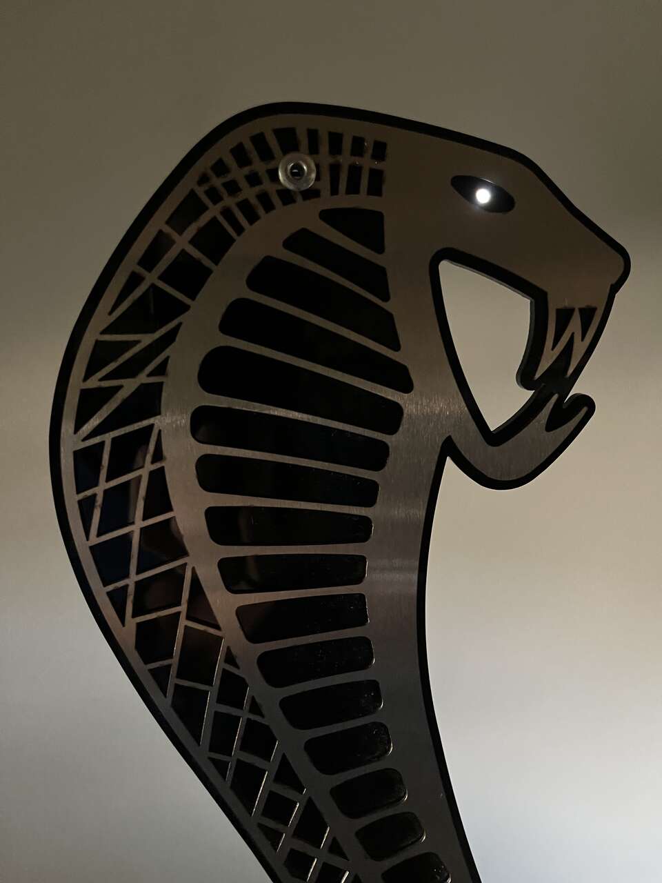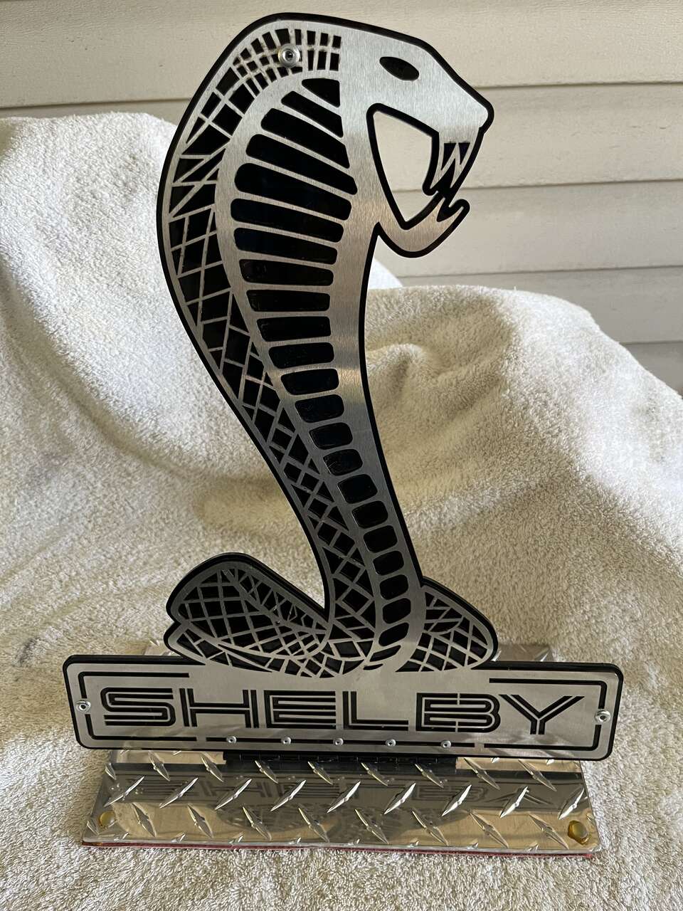 Lightly used high quality laser cut Stainless Steel Shelby Mustang Display on Aluminum Stand with Eye illumination. Great compliment to show off your Shelby Mustang at Car Show or your garage. Item to be sold with no guarantee or warranty implied. $250
