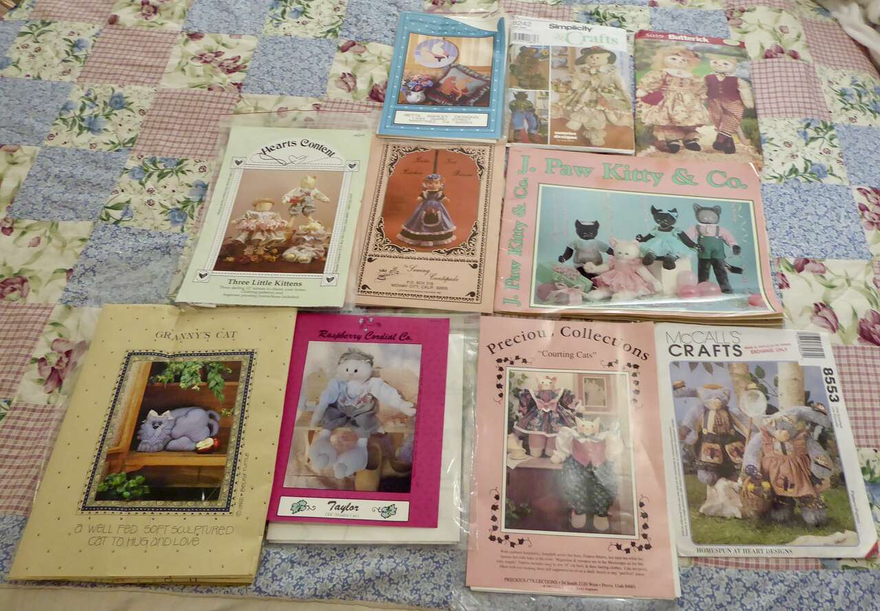 Assorted Cat / Kitten Doll Craft Patterns For Sewing With Fabric for fun decor and also some to play with.