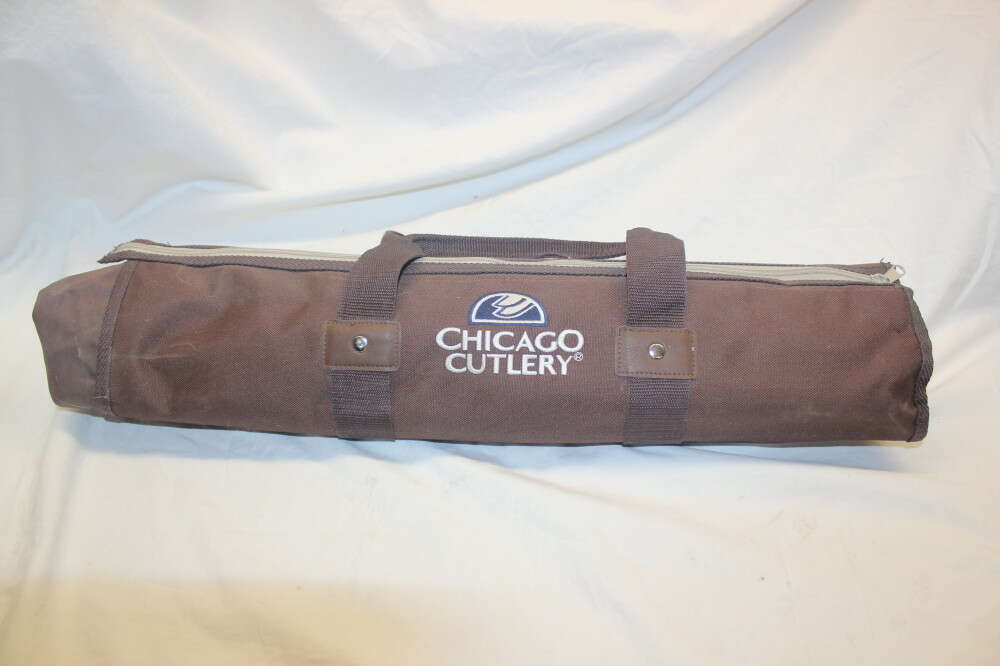 Chicago Cutlery barbecue set that includes: knife, tongs, fork , basting brush, hot dog sticks, and apron. Excellent condition, never used.