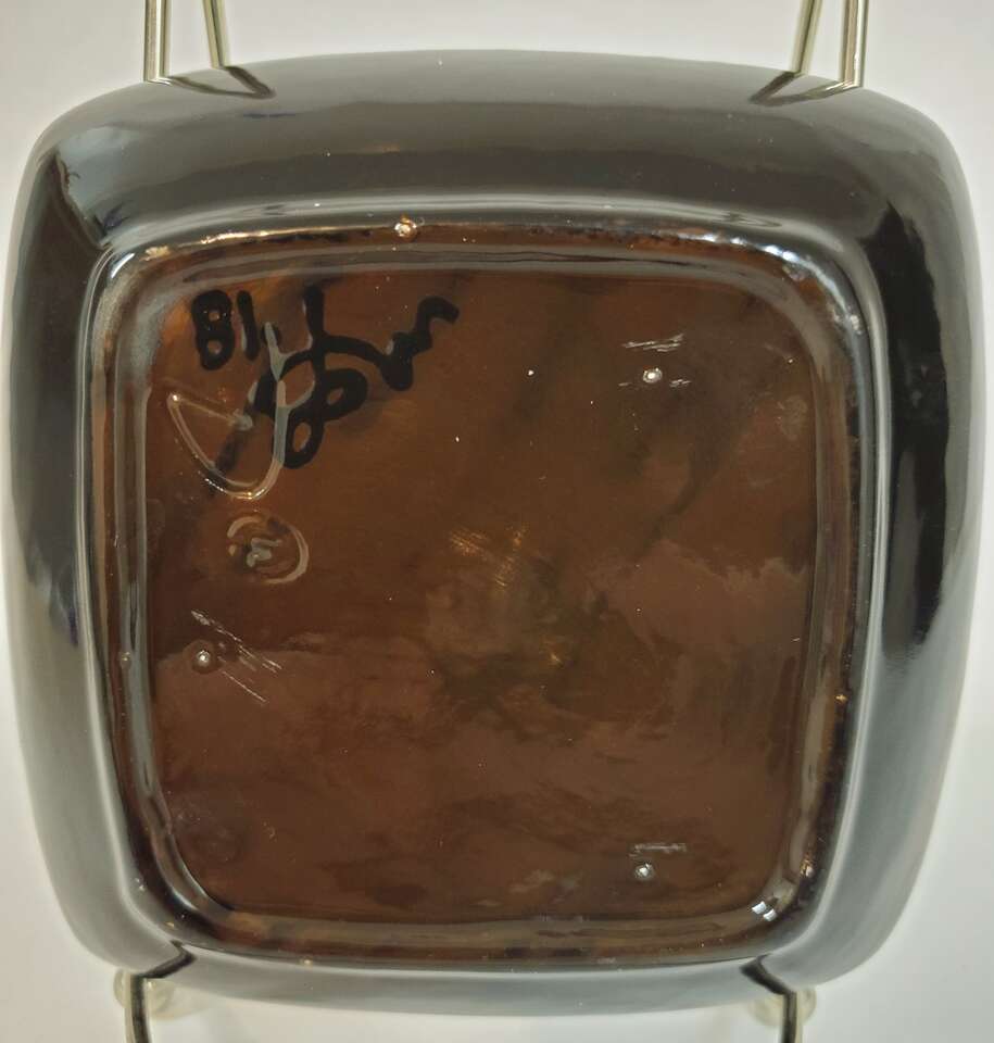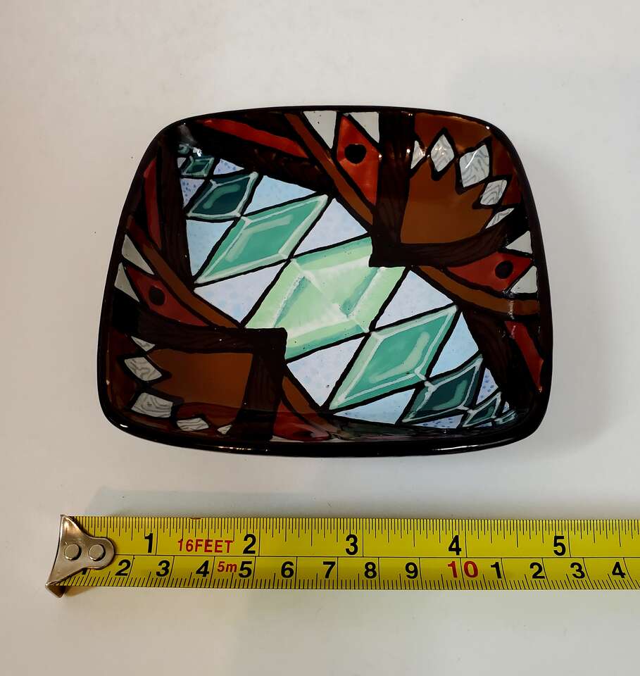 Hand Painted Square Pottery Bowl Signed by Artist with Geometric Designs. Cash Only, No Codes.