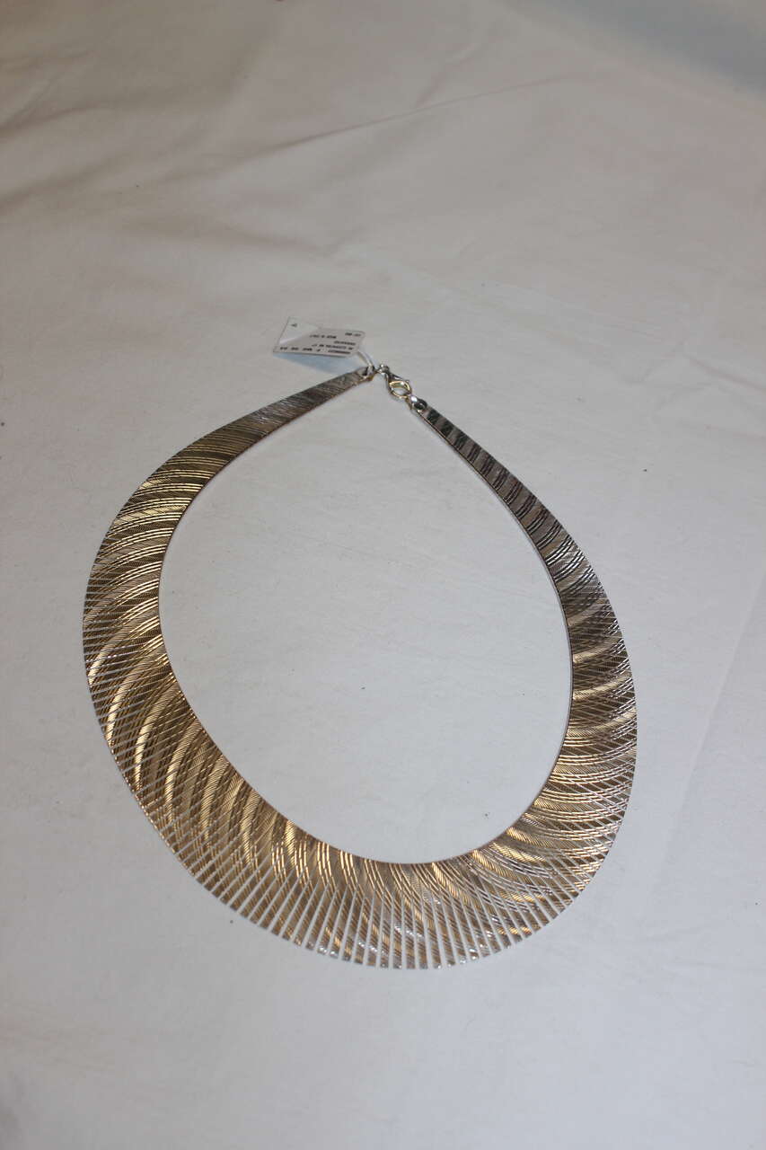 Italian made Cleopatra style collar necklace made from 925 Sterling Silver (45 grams). 17 long, with indivual pendants ranging from 1/4 to just over 1 in length with an intricate swirl pattern. Nice Italian made high quality necklace in original box. Wife already has other similar necklaces.