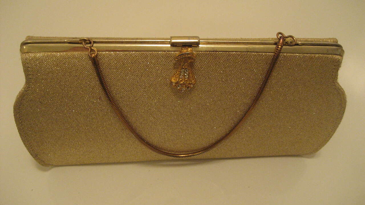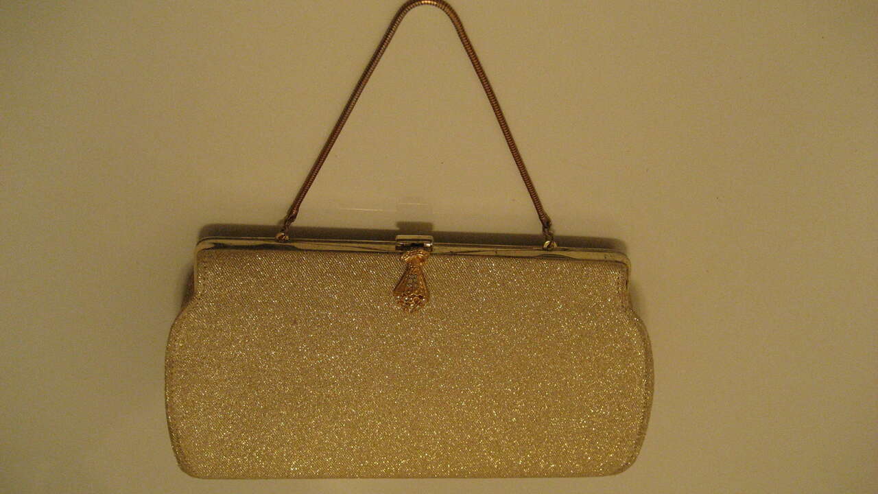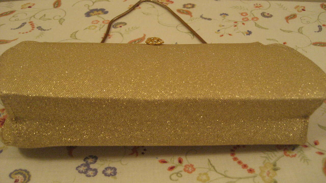 Gold Color Glitter Shine Evening /Party Event / Holiday Bag. Perfect for Wedding, Prom, Ball, Party. 9"inch Wide x 5"inch Tall. Pre owned. In Very Good Condition.