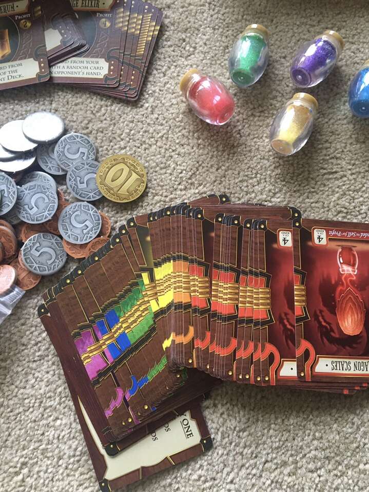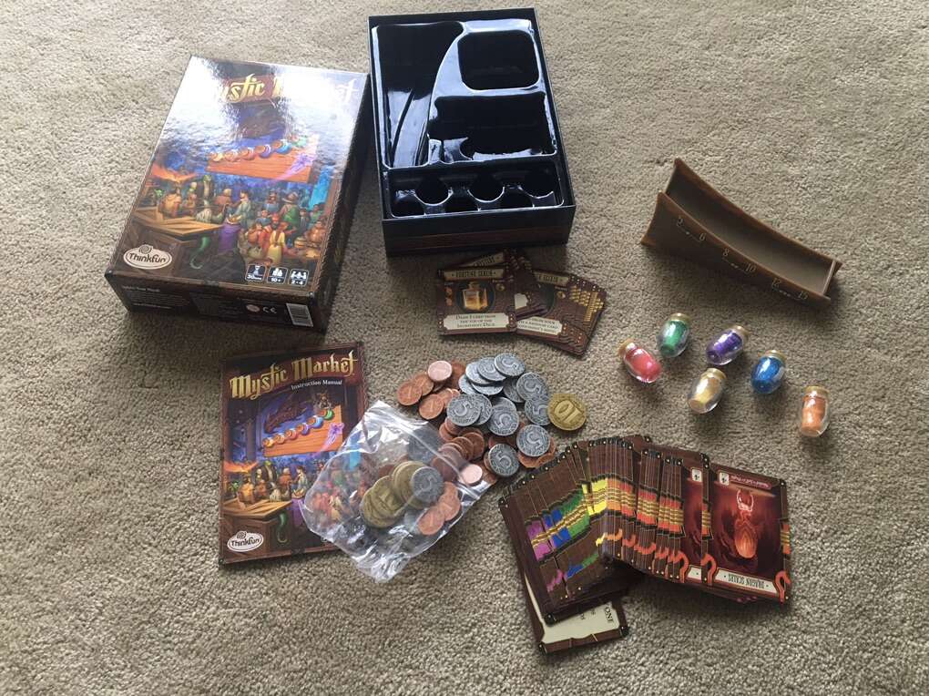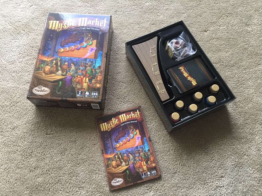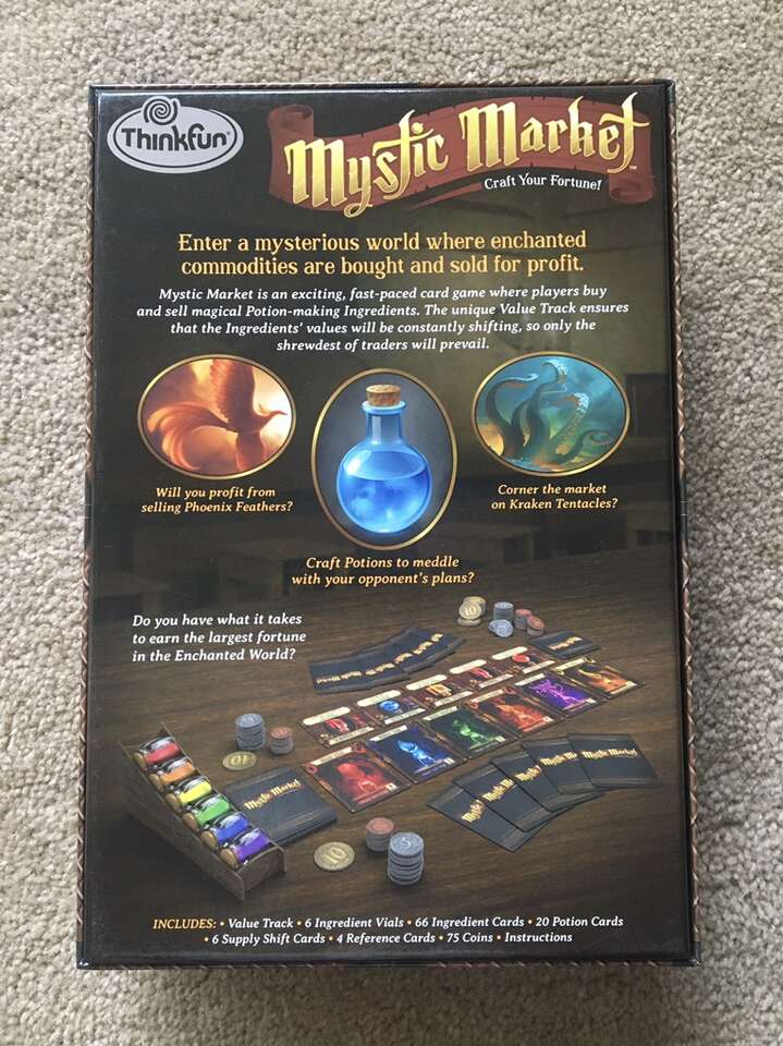 COMPLETE Mystic Market: Craft Your Fortune! Game by Thinkfun. Includes instruction booklet, value track, ingredient vials, cards, and coins. 30 minutes, age 10+, 2-4 players. Complete, no missing pieces. Excellent condition, like new. Text only. Cash or Venmo.