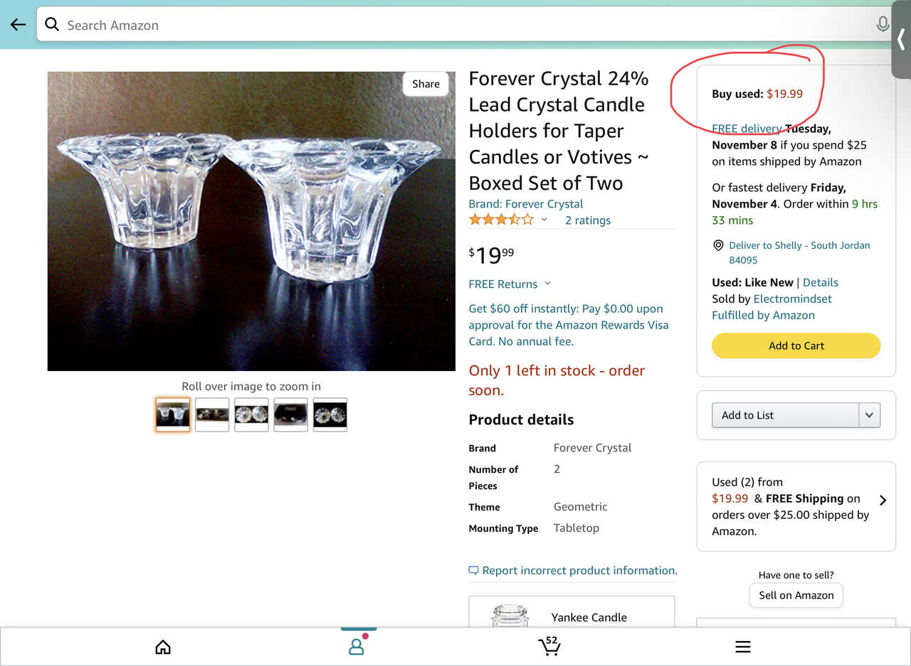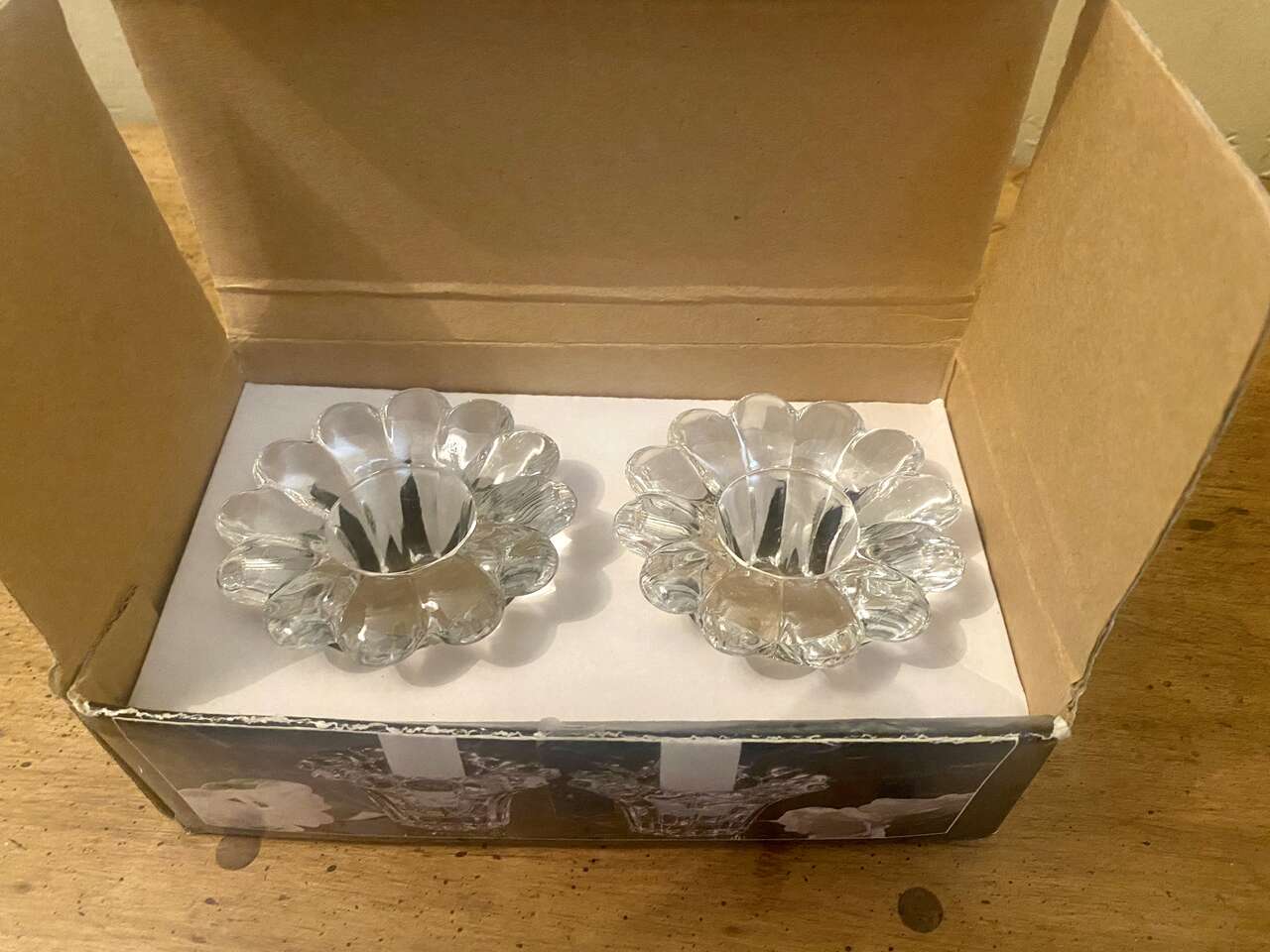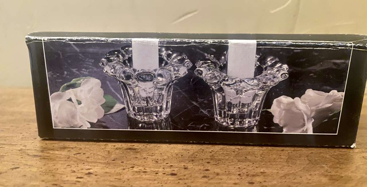 Beautiful Bubble FOREVER CRYSTAL Candle Holders In Box - Used On Amazon $20 - Indonesia - C PIX. These are absolutely beautiful!