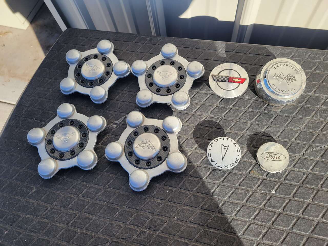 Misc wheel center caps $5 each on non sets, Corvette set (4) $40, Corvette pair $20. Thanks