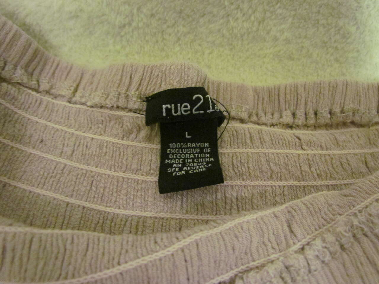 $8 Rue 21 Tan/Soft Brown off-the-shoulder Shirt Size: Large - pre-owned, but has the same lovely sleeves and gently used.