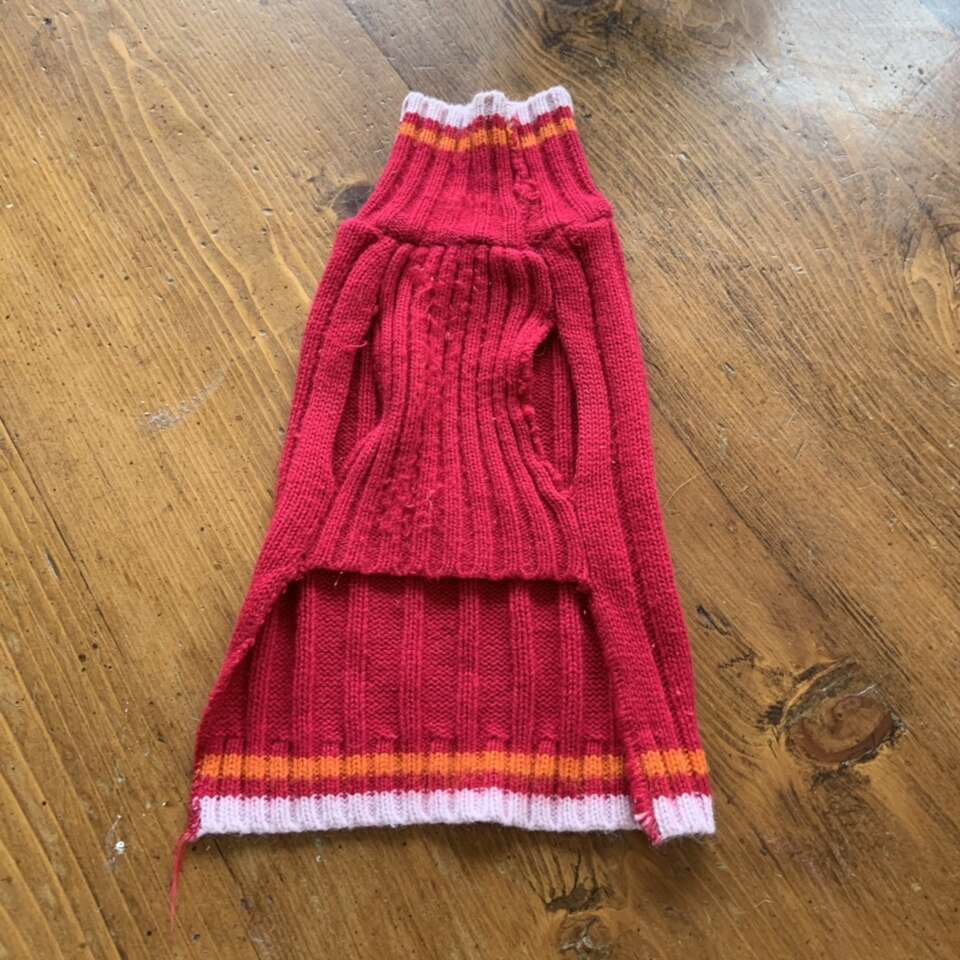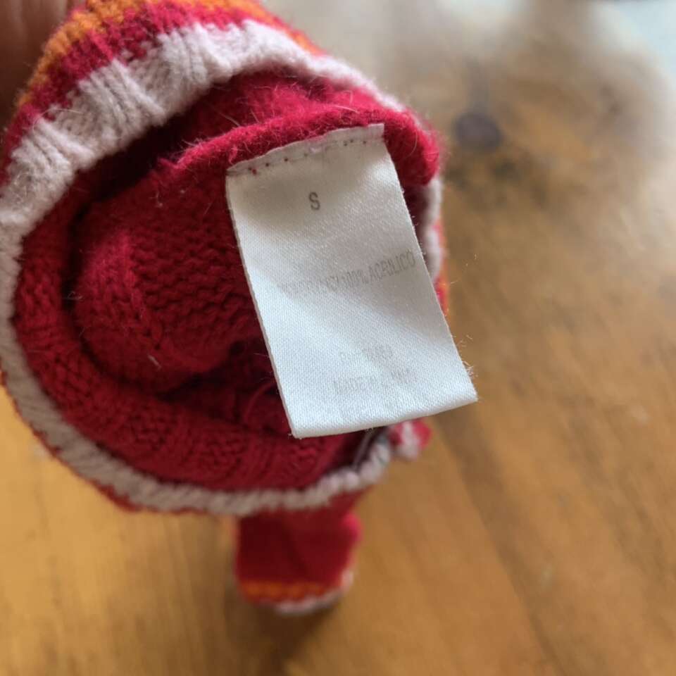 Hot Pink Orange White Dog Sweater Size S Does have a couple snags