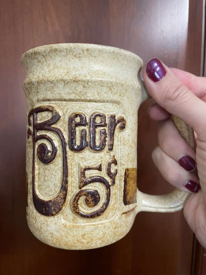 $5 - Antique Beer Mug & Book $5 - 5x Gin Tins (great for gifts) $5 - Rock Bottom Big ‘A’ Drinking Glasses $5 - **each Coca Cola Glass ($8 for both)