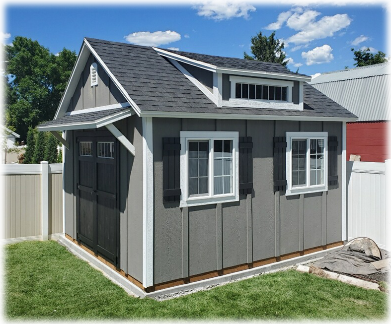 The photos shown in this ad may include several custom options not included in the base price. Our base model includes: 1 - 4' wide single door, Floor with lifetime floor joist warranty and 30 Year, Architectural Shingles in your choice of colors. Base model comes primed and ready for paint. Free Delivery and Installation within 70 miles of Springville, Utah.