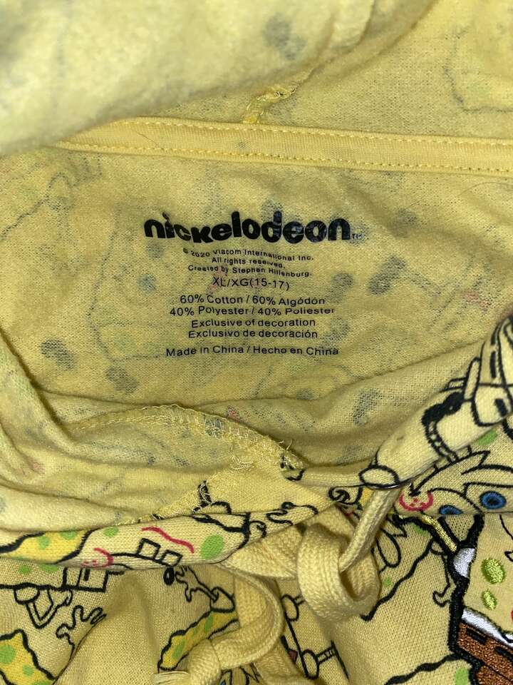 This is the cutest hoodie! It's medium weight, not super thick. It's 60% cotton 40% polyester. It was only worn once. It’s just a little too small. Runs more like a M/L. My daughter likes her hoodies very oversized, but she had to have this when she saw it. It's in excellent condition like new condition!