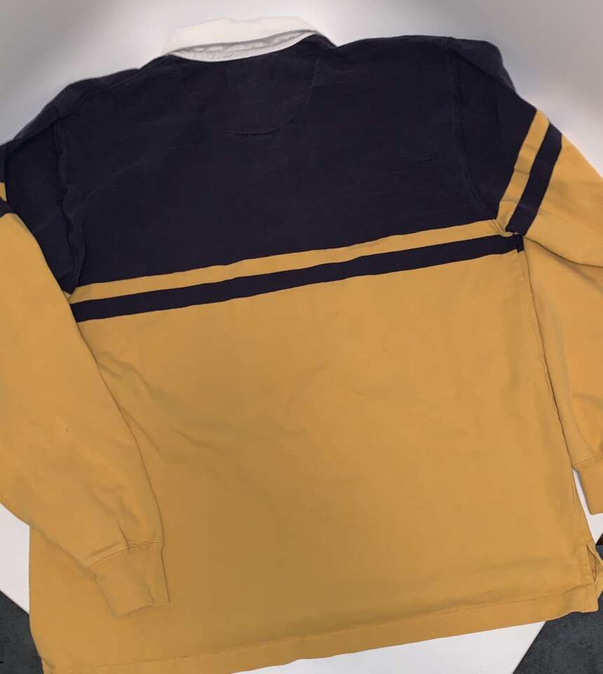 VenmoSize Large Vintage Mossimo brand Jersey Long Sleeve, heavy cotton Rugby / Polo Shirt with rubber buttons. Nice condition no holes or wear. Navy and mustard yellow colorblock. Message me if you’re interested in purchasing.