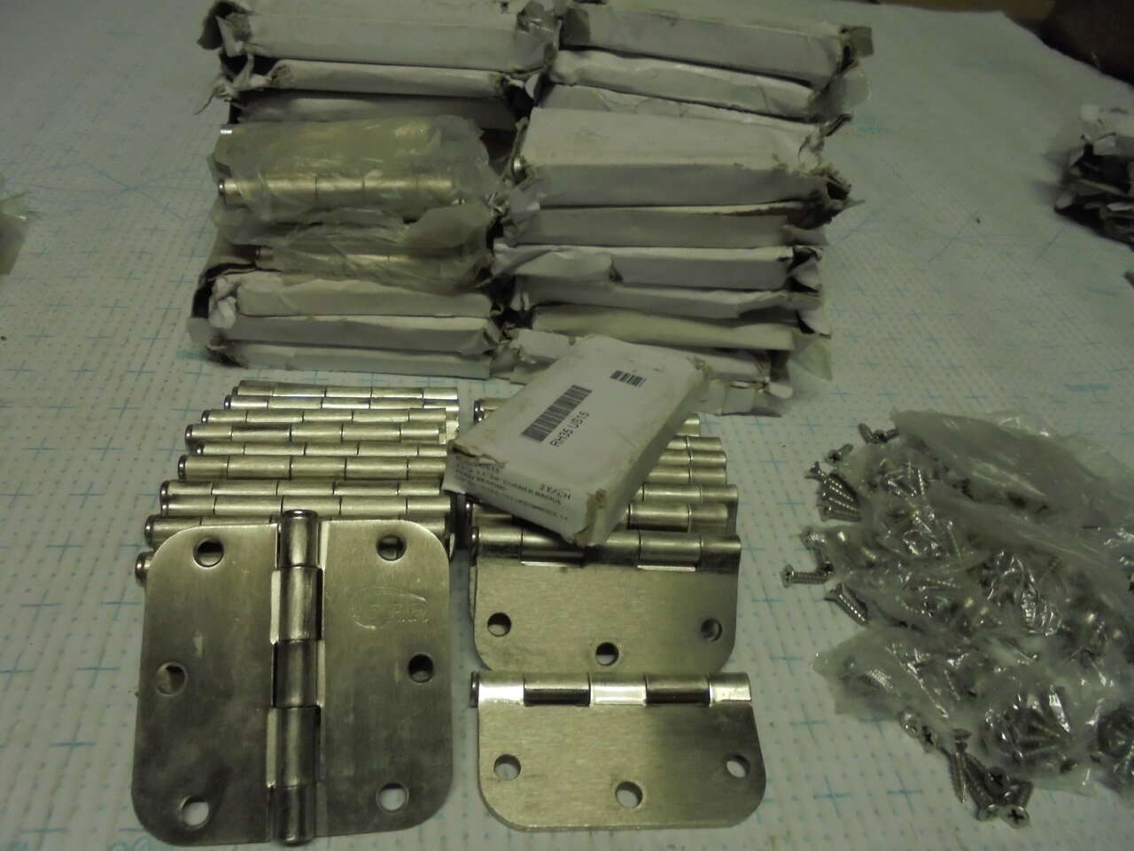76 hinges, 38 Pair, with screws for most. 3-1/2" High, 3-1/2" Wide open