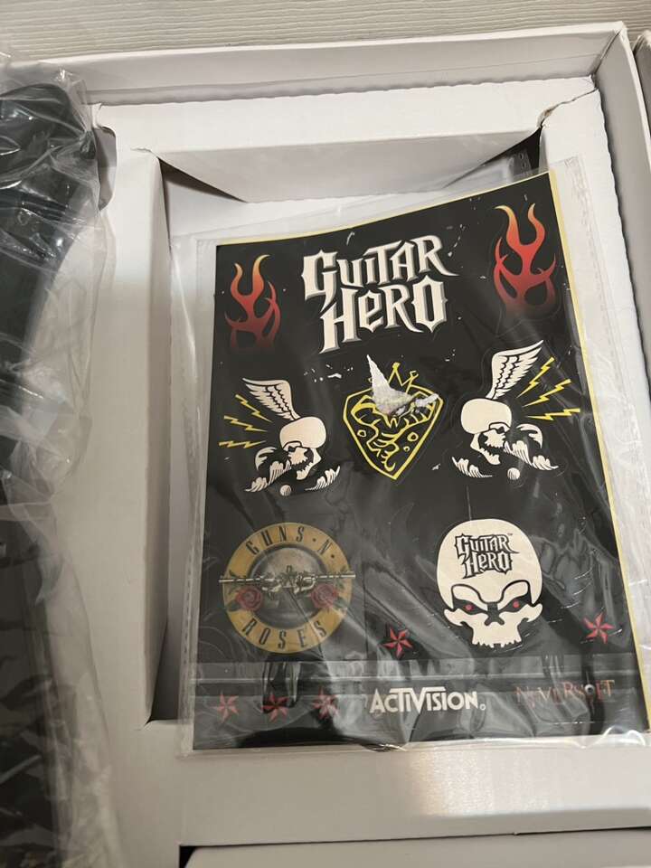 This listing is for the two guitars, just like new (open box), the 4 games, 2 adapters, 2 shoulder straps, and stickers, if they are wanted.