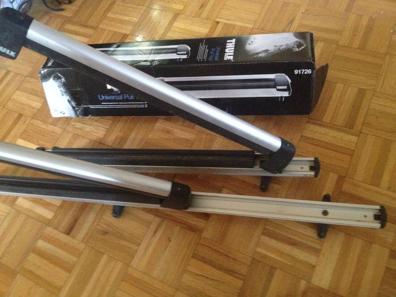 Thule Extra Large Ski/snowboard rack $279, it has about 30" of available space, comes with 4 locks and 1 key and speedlink mounting hardware that attaches to any style crossbars and locks. its in great functional condition and looks great!