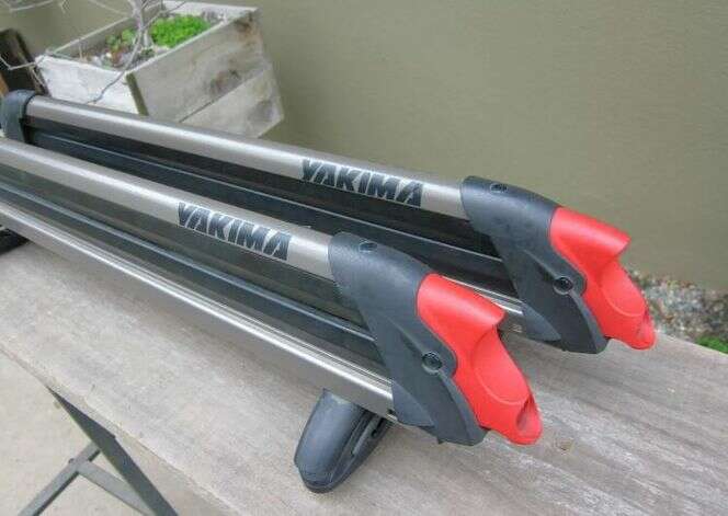 so Large Yakima ski/sb carrier with 24" opening locks and key with oval bar mounts is $175