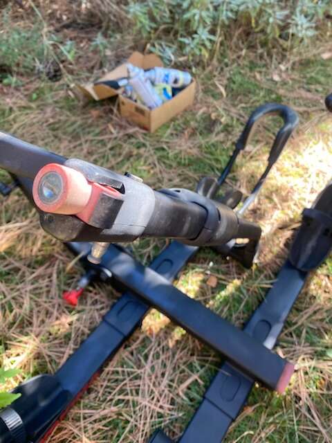 Yakima HOLDUP 2 bike carrier platform style $300 holds 29rs too one lock only. The other lock is broken/cut...
