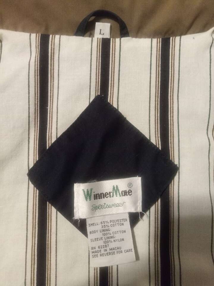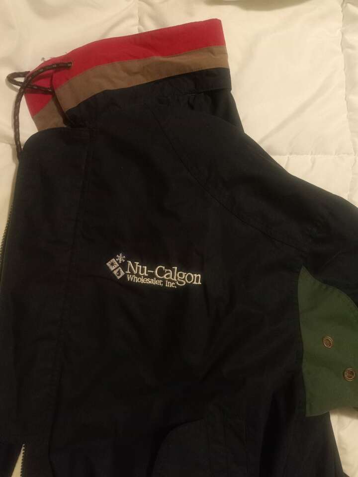 Price Reduced This Large men's cotton/poly jacket with hood is new, unworn, and from a smoke-free home. It is lightweight with a nice lining. It has dual front pockets on each side, with an internal pocket on the right. It has both zip and button closures, vented sleeves, an integrated hood, and elastic waisted bottom. It does have branding on the front left, see pictures. Cash or Venmo only.